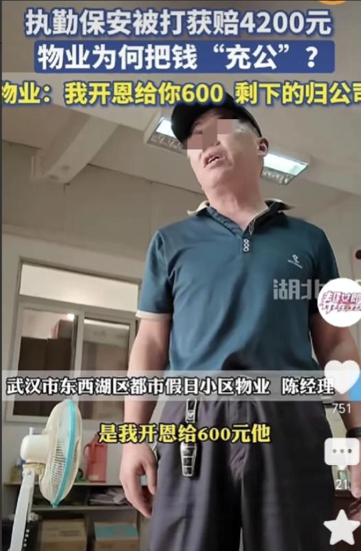 想钱想疯了!湖北武汉,一男子在小区当保安,执勤时被业主打伤,业主赔偿他4200元,男子不会电子支付,委托物业帮他收款,事后,男子到物业要钱,物业经理不给: 这是业主赔给物业的钱,我开恩给你600元,剩余的钱充公!结局令人意外! 合同白纸黑字摆那,通知明明写得清清楚楚,赔偿就是给龚师傅的。 但物业经理愣说:“这是咱物业的公款,这钱谁都动不了,给你六百都算我大发慈悲。” 龚师傅年纪不小,守了一辈子门,电子支付怎么也学不会,信得过物业是自己人,这才拜托帮忙收赔付款。 结果自己的补偿款,东拼西凑赖到别人账上,一开口讨钱还被羞辱一通。 龚师傅被逼得没辙,找媒体帮说句公道话。 事件曝光,网友全体炸了锅,关键时刻,当地民警出现,用最直接的实锤把调解协议拍到桌上。 官方一锤定音,写明了赔钱款项属于龚师傅,物业经理之前的套路都不算数,网友齐喊“解气”。 其实,真要说物业经理的骚操作算不上什么新鲜套路,放在职场、演艺圈、合伙团体,能见到各种各样奇葩。 金钱到了别人口袋,哪怕只隔着一个转账通道,也有人想方设法“留下一口汤”。 但这年头,群众都明白一个道理:合同是合同,自己劳动的汗水,不能被一句“规矩”就塞进别人兜里。 龚师傅维权路上无奈、惊愕、到找记者再到民警介入,每一步其实都备受关注,全因为人性层面的不甘谁都懂。 看回最近的社会新闻,企业或团体也常有类似画风。有些涉外公司高管利用信息不对等,借口流程繁杂、制度“黑箱”运作,擅自挪用员工应得奖励,最终被曝光后丢了职位,还留下行业口碑大滑坡。 但社会进步的一面就在这里,媒体和执法机关一亮相,“真相”很快冲洗掉那些歪风邪气。 龚师傅虽然苦了一阵,好歹还是拿回了自己本来该有的钱。 物业经理把戏演砸了,个人名声全网乱飞,堪称反面典型教材,谁再想学点歪门邪道,先看这出新闻得琢磨清楚后果。 回到生活日常,人情冷暖说到底就体现在这些细节里。一个承诺一句公道话,常常比钱本身更让人走心。 龚师傅把希望托付给物业,本只是出于信任,但社会太复杂,正直反遇黑心,靠得住的往往还是法律和舆论。