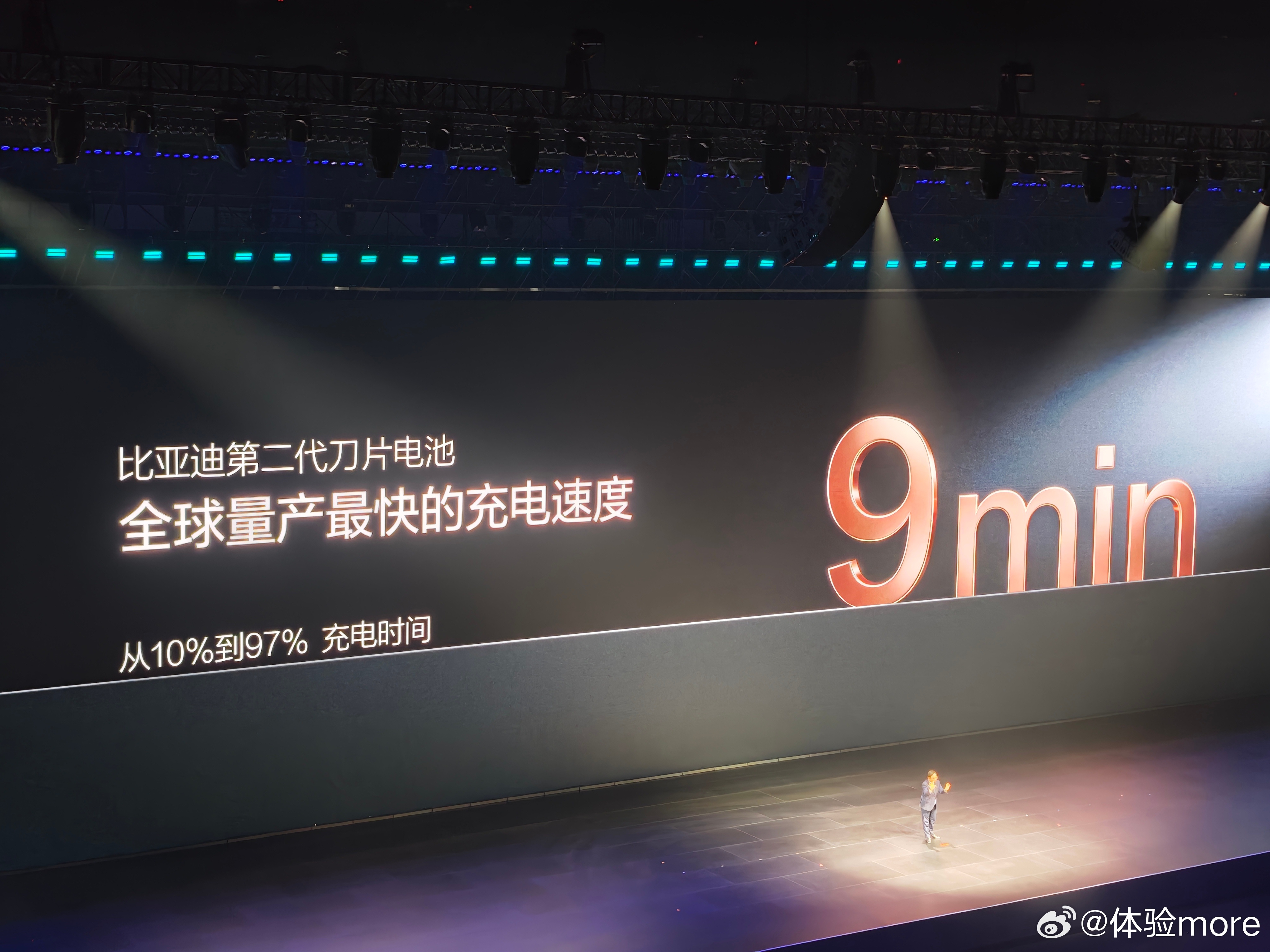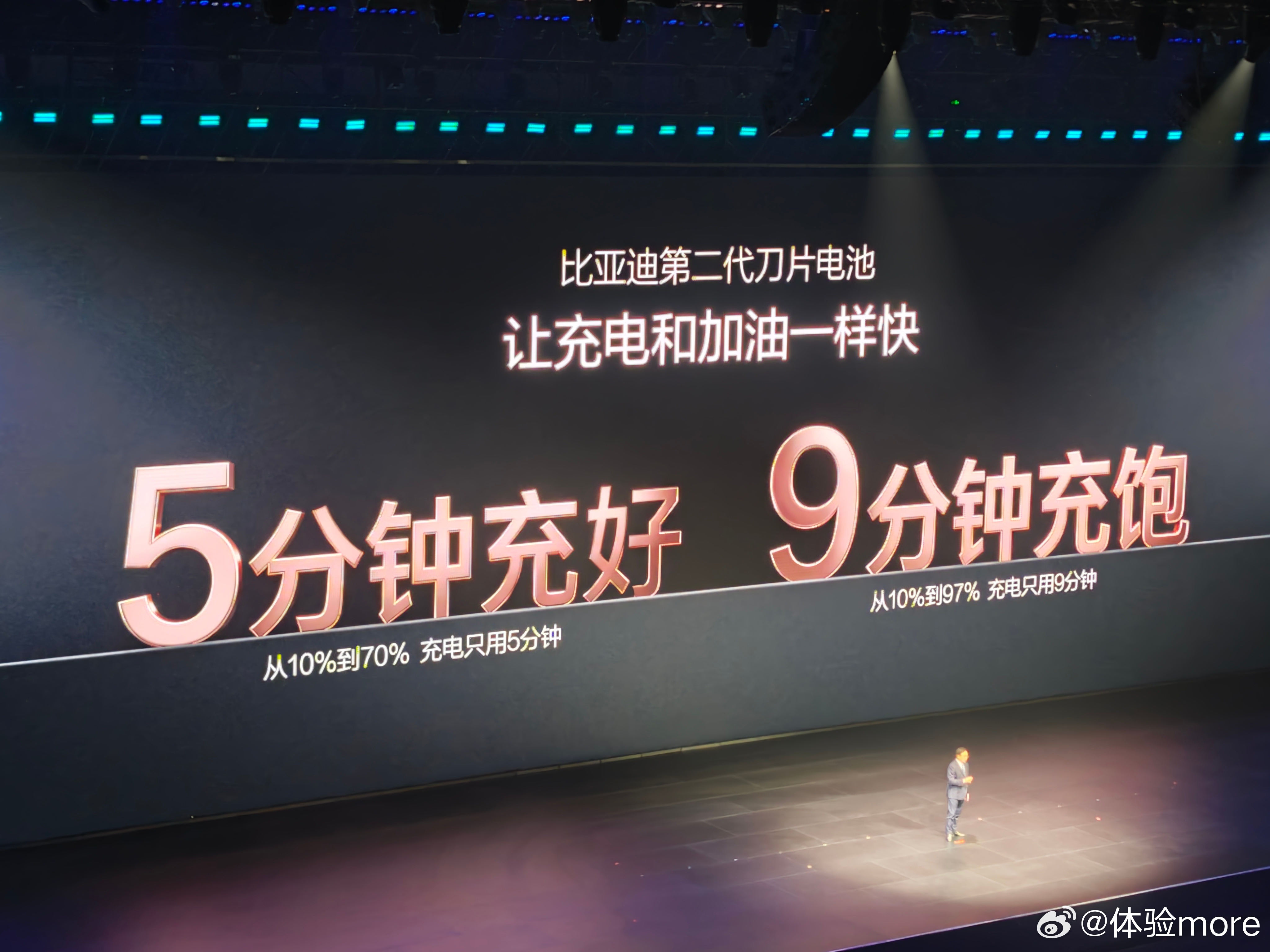 比亚迪第二代刀片电池从10%到70%充电用时5分钟不够惊艳,从10%到97%充电用时9分钟非常惊艳,🐮🐮。