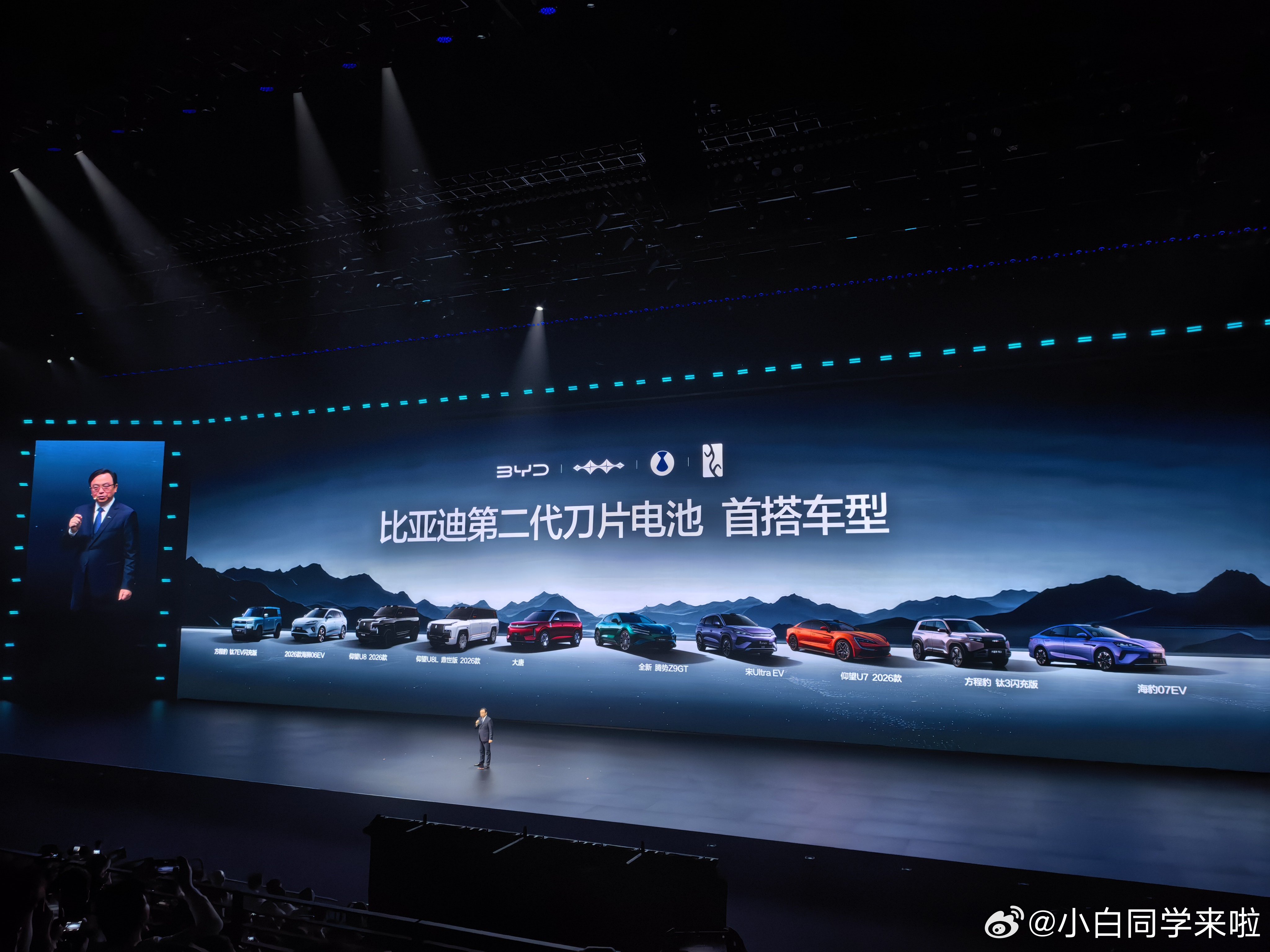 比亚迪闪充技术发布会,六角大楼礼宾楼前摆放了十一台搭载闪充和二代刀片车型。