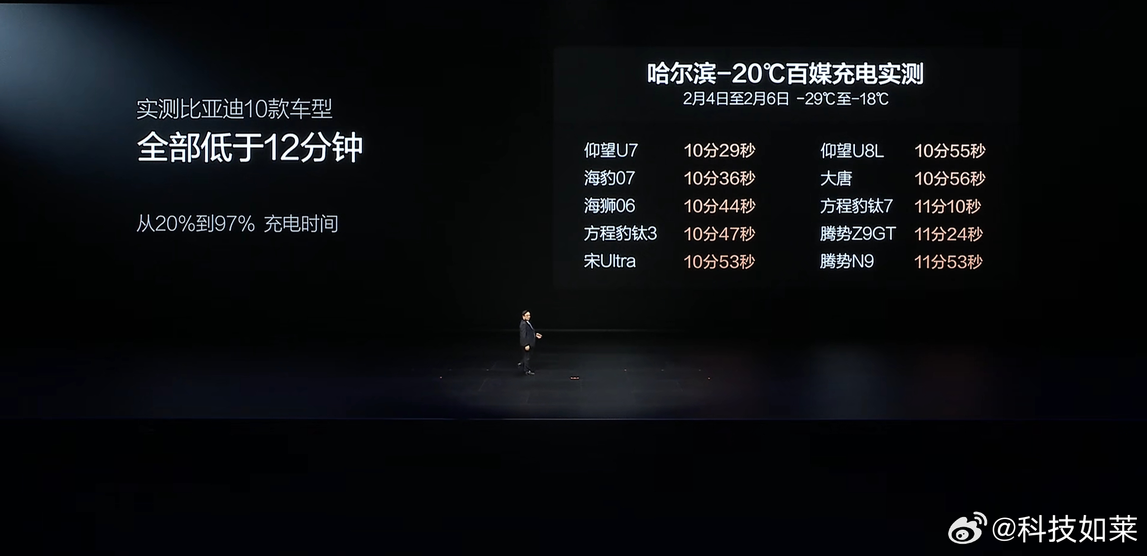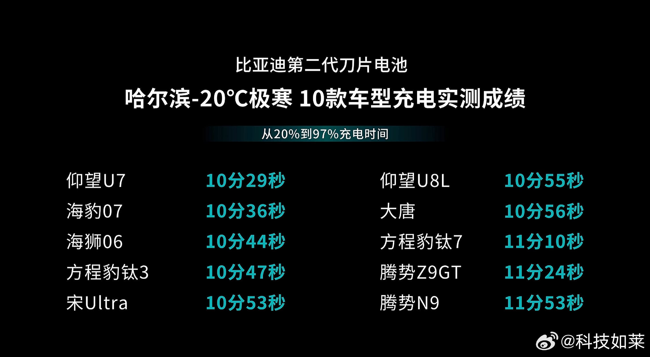 在哈尔滨-20°C极寒充电实测10款车型,充电时间从20%充到97%都低于12分钟,真的太猛了比亚迪今晚发布二代刀片及闪充仰望汽车26款闪充焕新升级全新腾势Z9GT将于今日上市 比亚迪第二代刀片电池5分钟充好比亚迪二代刀片电池质保加码