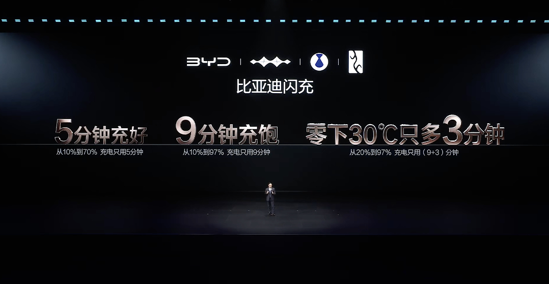 2、兆瓦闪充2.0:峰值功率1500kW,充电5分钟,补能400-500公里。配合2026年建成20000座闪充站的计划,补能速度正无限逼近燃油车加油 。比亚迪今晚发布二代刀片及闪充大v聊车