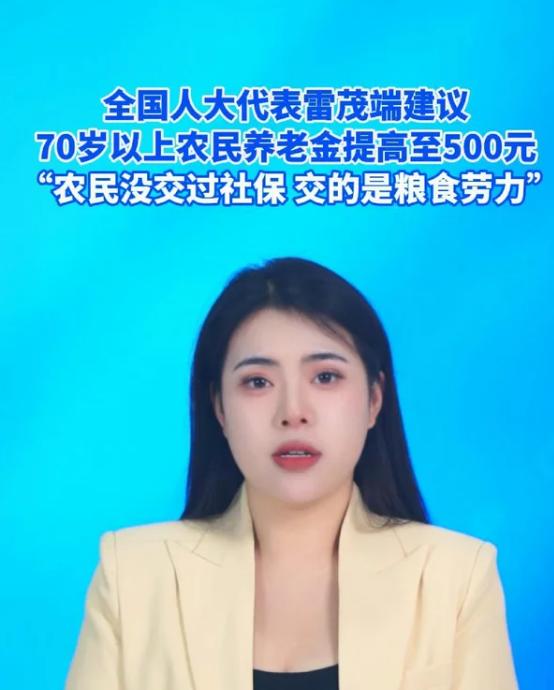 全国人大代表雷茂端建议,70岁年龄以上的农民养老金,提高至500元。 我觉得