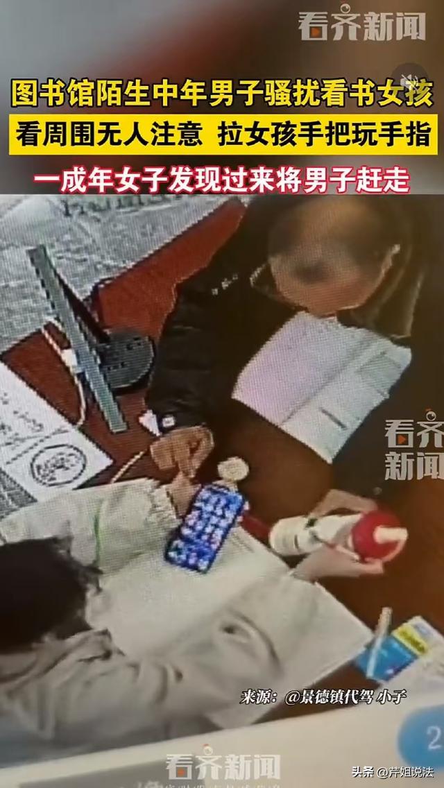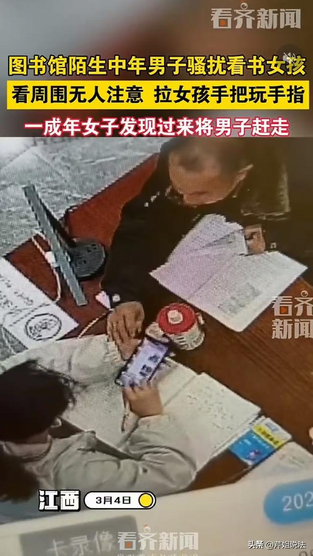 江西,一个女孩在图书馆写作业看书,一个中年男子坐到她对面,趁旁边没人,男子竟然抓住女孩的手,把玩她的手指,还差点把女孩的奶茶碰翻。女孩多次抽回手,但因为年纪小不敢吭声,幸好,一名成年女子发现了异样。 据看齐新闻3月4日报道,女孩穿着白色外套戴着眼镜,看起来明显是未成年人。 当时,女孩是一个人去的图书馆,她找了一本书,还带着作业。女孩坐在座位上,旁边放着一杯奶茶。 女孩坐下了后,先是看了一会书,又写了一会作业。 就在女孩写作业的时候,一个中年秃顶男子走了过来,男子在书架上找了一本书,往四周一看,看见了一个人写作业的女孩。 男子径直走到女孩对面,坐在了她桌子的对面。 最开始,女孩并没有注意到男子。可能是有作业不会写,女孩拿出手机,一只手拿手机查资料,另一只手写答案。 谁知道,男子往四周一看,见旁边没有人注意他,竟然伸出手揉捏女孩拿手机的那只手的手指。 女孩一下子懵了,不知道该怎么反应,她飞快看了男子一眼,还以为他是不注意碰到了自己。 可男子见女孩不吭声,竟然变本加厉,一只手抓住女孩的手不让她动,一只手伸过去,仔细的摩挲揉捏女孩的手指。 女孩年纪不大,可能是一次碰到这种事,她不敢反抗,只是整个人显得非常紧张,不停打开手机又关上。 就在这时候,旁边有人路过,男子飞快把手缩了回去。 几秒钟后,路人走远了,男子竟然再次伸出手去拉女孩的手,一只手拉住后,男子又伸出另一只手去摸,不巧的是,女孩的奶茶快喝完了,杯子比较轻,男子不小心碰倒了。 女孩飞快伸手,把杯子扶住了。 也幸好,这边发生的动静被旁边的人听到了,男子再想拉女孩的手的时候,女孩使劲一挣,挣脱开了。 可男子并没有放弃,过了几秒再次出手,不过,刚刚的动静已经吸引住了旁边一位成年女子的注意,虽然她没看见发生了什么,但女孩神情紧张,一看就是遇到事了。 这次,男子一伸手,旁边的女子就看见了,她呵斥男子:你干什么? 男子还以为没有人看见他的行为,被女子吼了一句,男子吓了一跳,快速将手缩了回去。 旁边那个女子走到女孩的桌子前,男子看了她一眼,一时之间非常慌张,他佯装镇定翻了几页书,女子出口骂了他一句:赶紧滚!男子这才带着书灰溜溜走了。 男子的行为应该如何认定?女孩遇到这种事应该怎么处理? 《治安管理处罚法》规定,猥亵他人的,或者在公共场所故意裸露身体,情节恶劣的,处五日以上十日以下拘留;猥亵智力残疾人、精神病人、不满十四周岁的人或者有其他严重情节的,处十日以上十五日以下拘留。 男子在图书馆看书时,趁无人注意,抓住女孩的手把玩、摩挲,这种行为属于明显的猥亵行为。 女孩穿着打扮显示为未成年人,如果她不满十四周岁,男子的行为就属于加重情节,应受到更严厉的治安处罚。 很多人觉得,猥亵没有什么大不了,顶多被拘留几天,口头教育一下,实际上不是这样的,猥亵他人,特别是未成年人,稍微严重的,还可能构成犯罪。 《刑法》第二百三十七条规定,以暴力、胁迫或者其他方法强制猥亵他人或者侮辱妇女的,处五年以下有期徒刑或者拘役。聚众或者在公共场所当众犯前款罪的,或者有其他恶劣情节的,处五年以上有期徒刑。猥亵儿童的,依照前两款的规定从重处罚。 如果采用暴力手段猥亵他人,就构成了猥亵罪,男子虽然没有使用暴力、胁迫手段,但是在公共场所女孩实施了猥亵行为,如果造成了严重后果,或者影响恶劣,也会构成此罪。 女孩年纪太小,遇到这种事不敢吭声,实际上,不管成年人还是未成年人,遭到侵害的第一时间,一定要向周围的人求救,勇敢维护自己的合法权益。 男子被人制止后,立即灰溜溜逃跑了,说明他知道自己的行为不对,更说明他只会欺软怕硬。遇到这种事,受害者在保证自己安全的情况下,一定要勇于反抗,只要反抗,坏人就不敢嚣张!