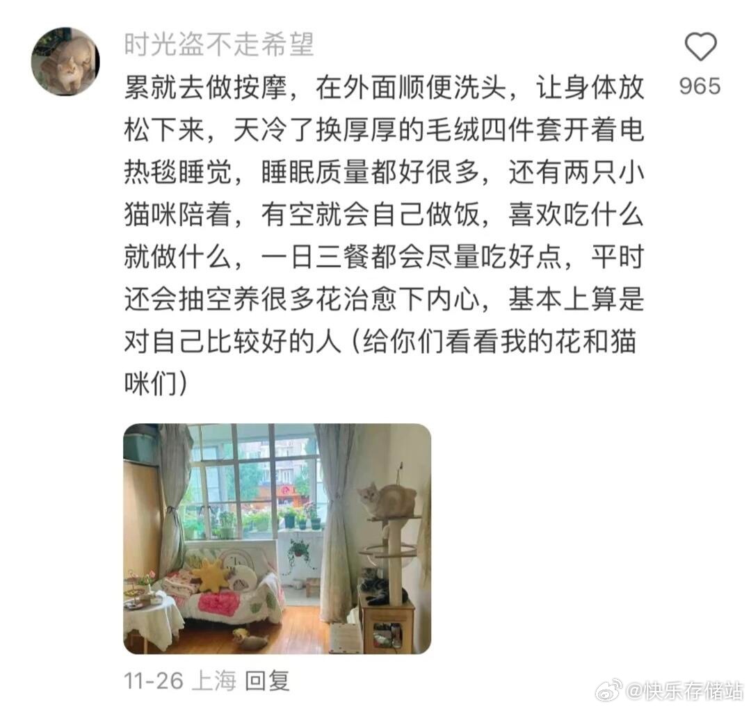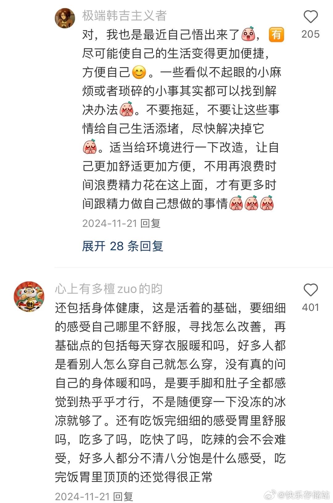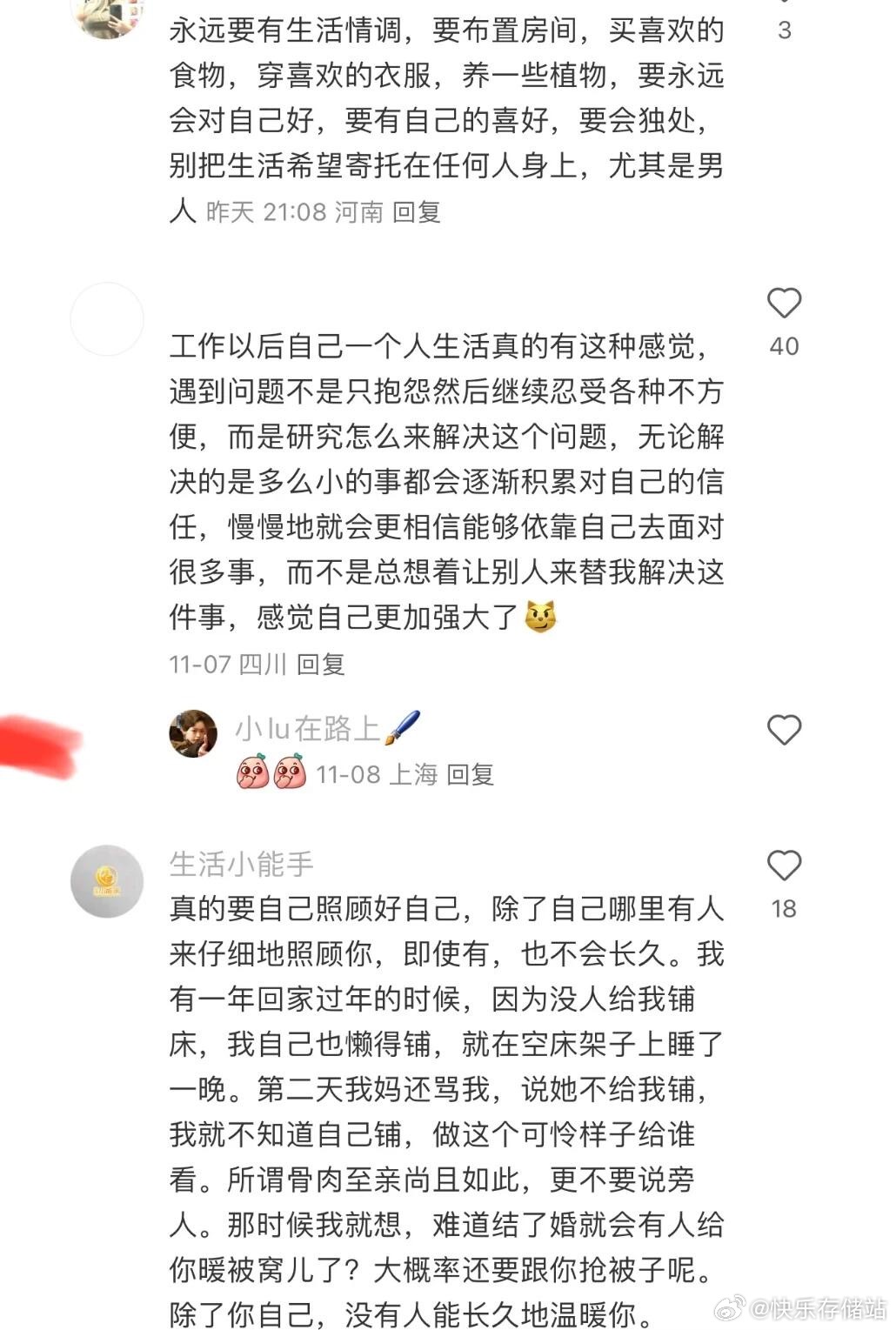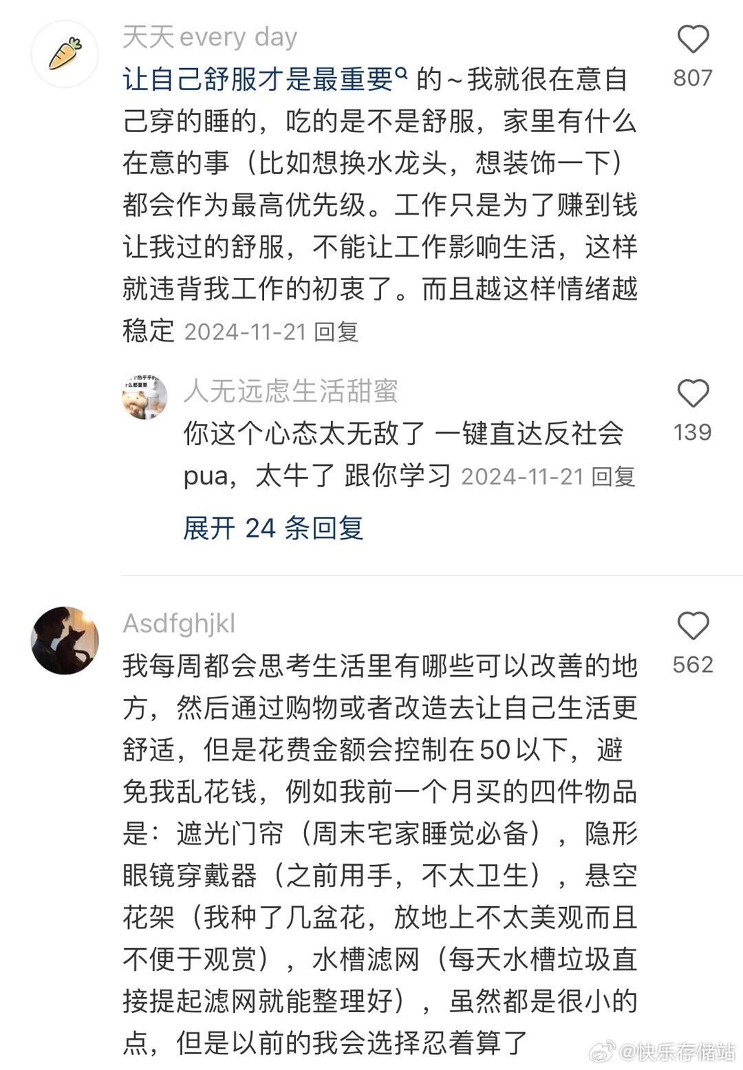 原来,让自己过的舒服不需要很多钱|||不要拘泥于小事情,去感受大的东西,世间万物自我的感知和修炼,学会和所有的情绪相处,幸福值会拔高。得要自己先学会过好日子,人生的随机性那么强,要学会心疼自己,一定要让自己舒服。