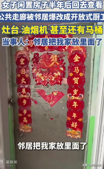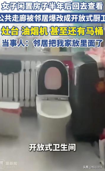内蒙古,王女士怎么也想不到,自己半年没回家,公寓的走廊就被邻居占用改造成厨房和厕所,而且邻居态度强硬,拒不整改,这到底是怎么回事?难道物业也不管吗? 王女士平时在外地工作,极少回家,这次回去本来是想收拾家里的东西把房子租出去。结果刚回到公寓楼,出了电梯走到走廊,眼前的一幕让王女士惊呆了。 原本干干净净的公共走廊,被邻居硬生生改成了自家的厨房和厕所,而且厕所的马桶还裸露在走廊里。 看到眼前的景象,王女士差点以为进错了家门。找了半天才反应过来,自己家的大门被藏在了邻居家的厕所和厨房之间。 这也太奇葩了吧。 公寓是一梯两户,据王女士说,她在离开家之前,原本走廊是没有地砖的。 现在邻居为了占用走廊,把地砖重新铺了,还把吊顶装了上去,走廊的左边是灶台油烟机和洗菜盆,另一边直接摆了个坐式的马桶,连个遮挡的门帘都没有。 这要是外人走进来看,还以为这里就是邻居家的地盘,进错家门了。 更夸张的是自家的大门就在邻居厕所前面。 每次进家门都要路过别人家的厨房和厕所,一推开门一股油烟味和厕所味迎面而来,想想都觉得憋屈。 更好笑的是邻居居然还给自家的大门贴了春联,好像自己家也变成邻居的了。 王女士当时火一下子就上来了,当场拍了视频,找邻居讨要说法。 邻居开门看到王女士,一脸无辜的说“走廊本来也是空着,我改了一下做成自家的厨房和厕所,也没碍你什么事,还留了一个过道给你进家门,而且你长时间不在家基本上也没用到走廊几次。” 王女士气愤地说“你看看这叫不耽误我进门吗?走廊可是公共区域,不是你家开的,也不是你买下来的,你凭什么擅自把这里改成你家的厕所和厨房?再说了,公共区域我们都是要按面积交物业费的,你占了这么大的地方,你交物业费了吗? 而且就算我不回来住,那也不是你占用公共走廊的理由吧。你看我现在每次走回家都要路过你家的厨房和厕所,万一哪一天你在上厕所,我从电梯出来撞见了,你觉得合适吗? 你在走廊做饭,油烟味也会通过门缝飘到我家屋子里,到时候把我家的门帘柜子都熏黑了,你来负责帮我洗吗?” 邻居还是一副无所谓的样子,说“我装都装了,那你想怎么办?难道还让我拆吗?那根本不可能。要不你就去投诉,我也不怕。” 说完邻居立马关上门,不再回应王女士的任何问题。 王女士真是有理没处说。她去找物业反映问题,物业上来一看也懵了,说“我们也没想到这家业主会把走廊改装成这样,之前也听说他们报备过,也没人投诉过,我马上跟他沟通,让他整改。” 物业使劲敲门,邻居就是不开,电话也不接。 不过这种事情,大半年了物业都不知道,这也太不可思议了吧。难道公共区域的卫生,物业不负责清扫吗? 没办法,看来物业是靠不住了,王女士只能把视频发到网上求助,准备走法律途径。 这也真是能遇得到这么奇葩的邻居,不讲道德,乱占走廊还不沟通整改。 民法典第274条写得明明白白,建筑区内的公共通道,楼梯大堂全部属于全体业主所有,任何个人不得私自占用改造。 王女士的邻居把公共走廊擅自改成厨房和厕所,明显已经违法侵占。 王女士可以依法申诉自己的权利,让邻居立刻把厨房和厕所全部拆掉,把走廊恢复原样,地砖吊台灶台马桶一律清走。 其次因为邻居违建,导致王女士没办法正常入住和出租房屋,邻居是要赔偿王女士的相关损失的。 如果邻居不听劝,死活不拆,王女士可以直接去法院起诉,申请强制执行,而且起诉的费用全部费用都要算在他的头上。 而且公共楼道乱装燃气,焊接下水道,本身就违反了消防和楼道安全规定,城管消防一旦介入,邻居大概率还得被罚款。 到时候这个邻居钱也花了东西也拆了,名声也臭了,妥妥的得不偿失。 如果是你遇到这样的邻居,你会怎么处理呢?