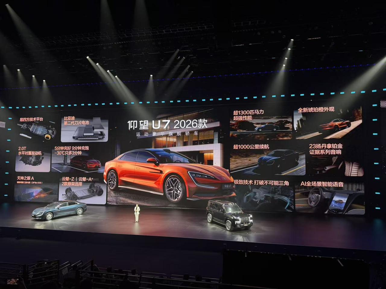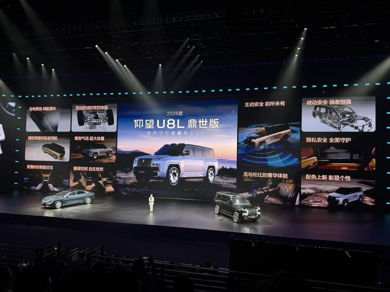 发布会压轴大戏来了!仰望三款新车齐发,价格从65.8万到130万,这阵容够顶 仰望U7 2026款:65.8万起,1006公里续航(CLTC)+1300匹马力,提供云辇-Z和云辇-A两种选择。纯电续航破千的性能旗舰。 仰望U8 2026款:100.8万起,舒适性做了12处升级,云辇-P Plus双阀液压减振,综合续航提升20.5%,补能倍率翻三倍。 最狠的是仰望U8L鼎世版:130万起,三大安全升级——应急浮水紧急自动激活、NOA爆胎稳行稳停、全场景隐私安全。 老款车型后续可通过OTA获得这些功能!应急浮水+爆胎稳停都能OTA?这波操作,老车主狂喜😭 三款车,三个定位:U7主打性能旗舰,U8主攻舒适升级,U8L专供顶级安全。但共同点都是——第二代刀片电池+闪充技术全系标配[狗头]