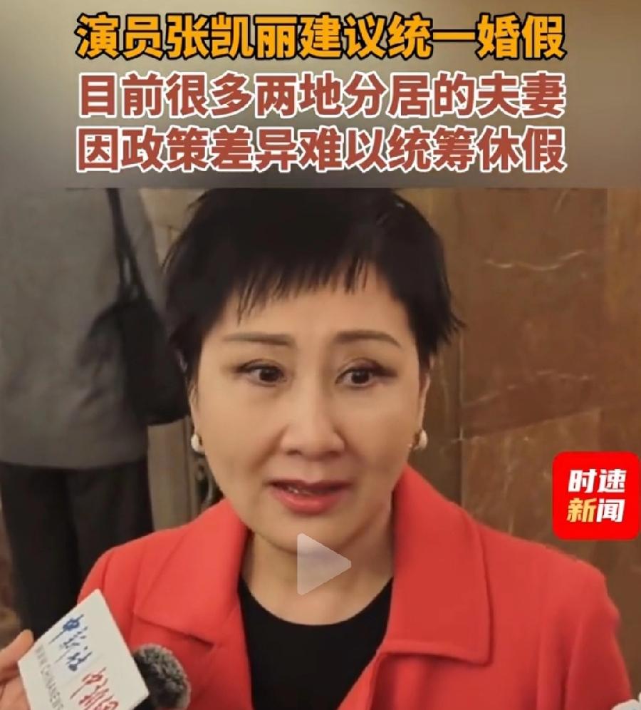 张凯丽建议婚假天数全国统一,这个建议很好,现在国家大力鼓励生育,这也是为年轻人婚姻,提供便利温馨配套政策,就像张凯丽讲的,现在各个地方,婚嫁天数不一样,特别两地分居年轻夫妻,一人假期到期了,另一人还没到期,只能分开,看似小事,其实影响新婚夫妻培养感情,甚至婚育的大事!其实国家出台政策也很简单,人社部制定一个全国规定就行了!