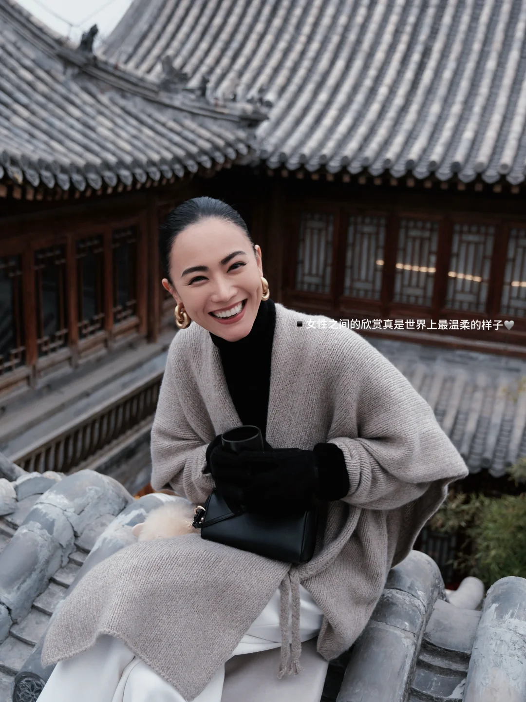 郝蕾身材真顶,一件普通的套头衫竟然穿出了高级感