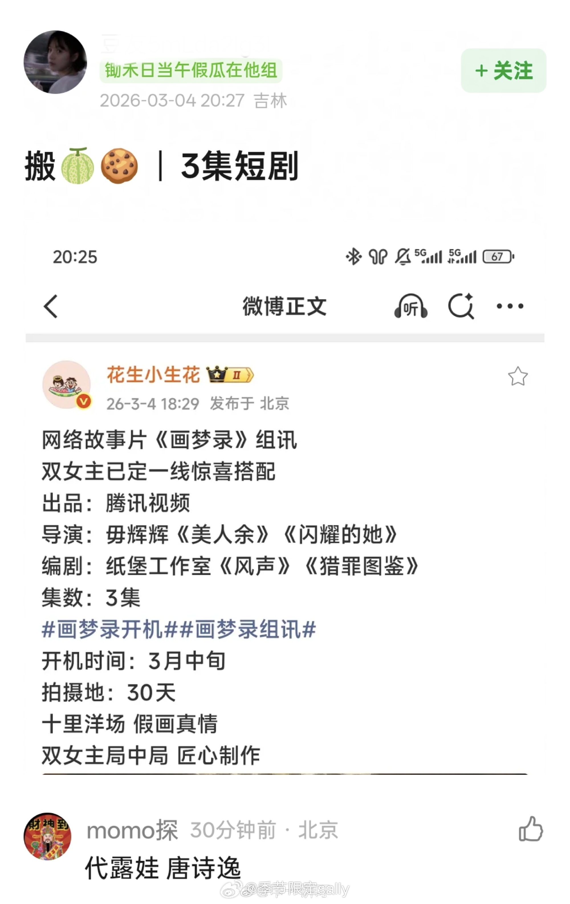 代露娃又传了一个🫓,好起来了,三集短剧《画梦录》双女主搭配唐诗逸