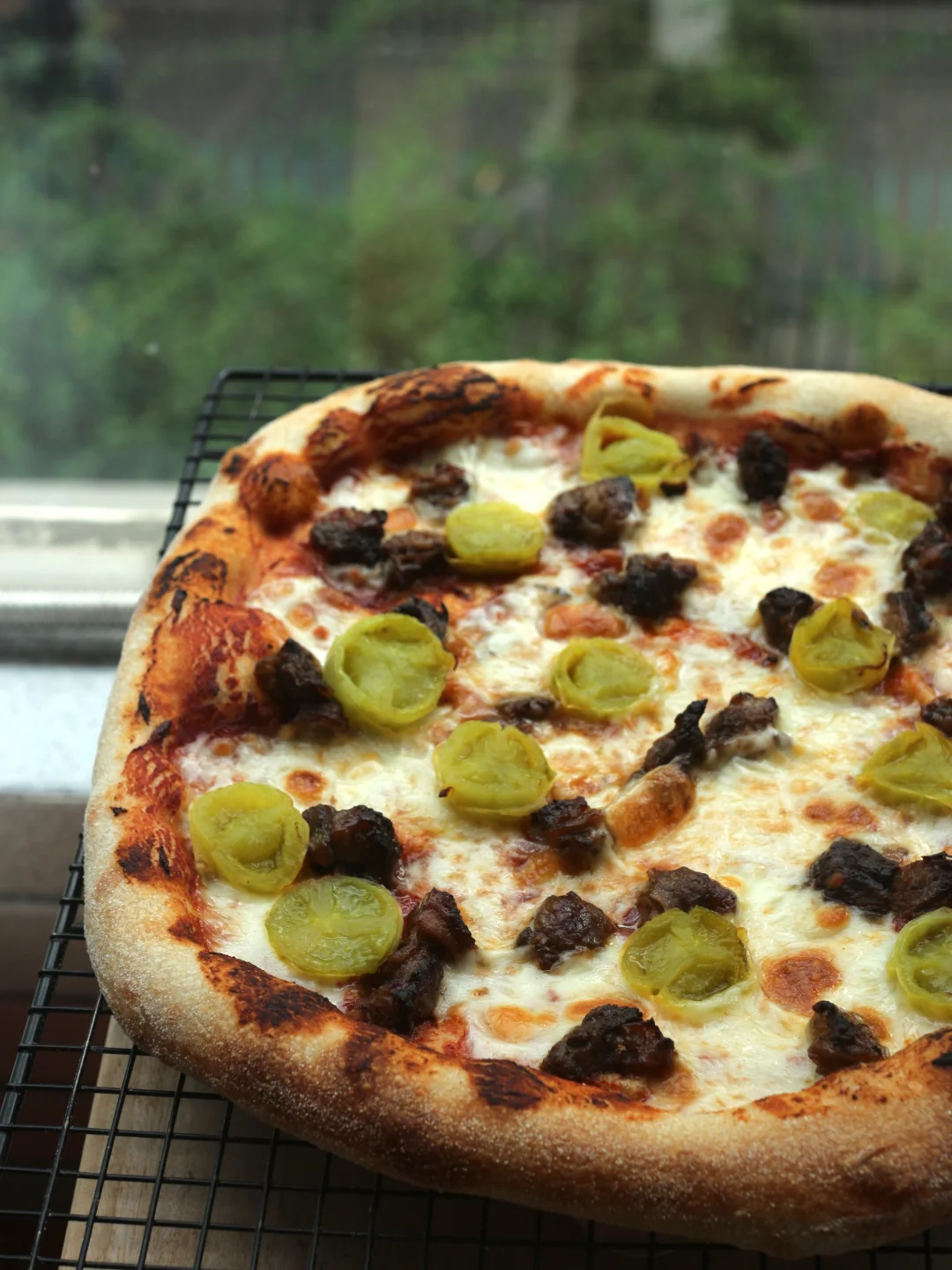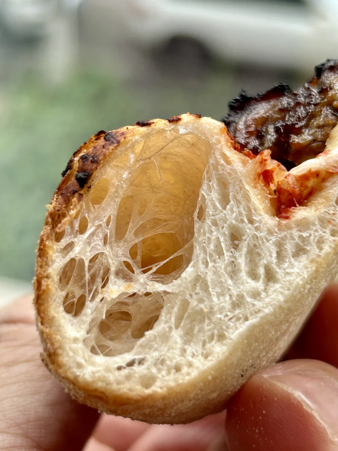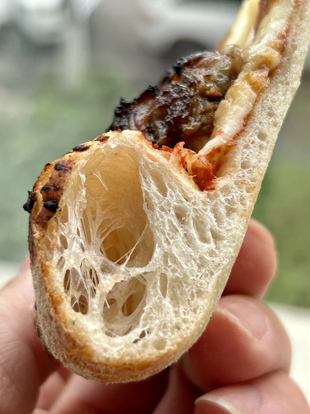 近日,做了一次披萨面团的“边缘性试探🧪”,采用国产粉+极保守的水量,通过 Biga前置发酵 + 长时间低温冷藏,解锁了惊喜的意式组织。