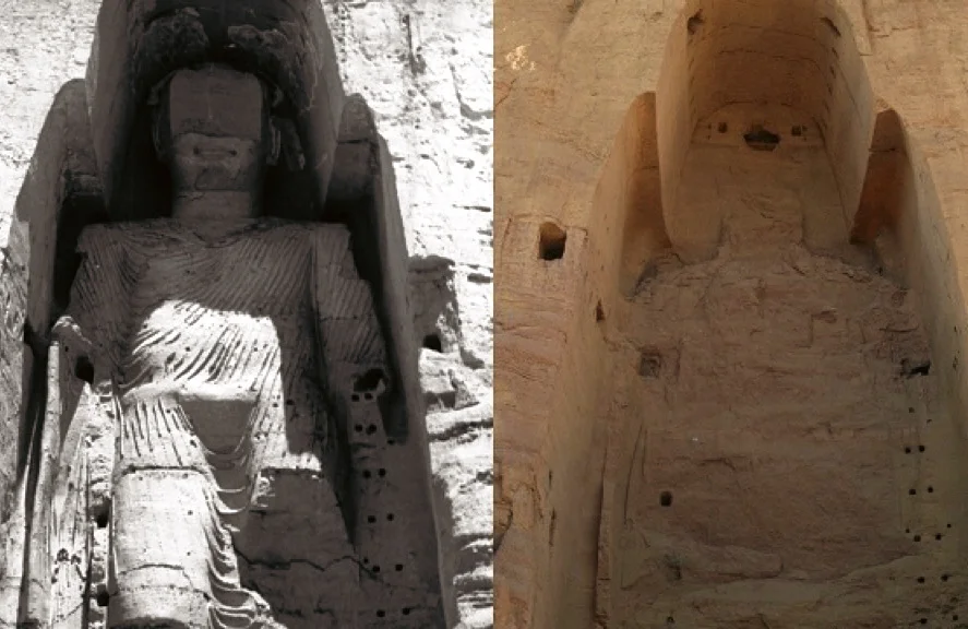 2001年炸毁两尊巨型佛像(东大佛53米、西大佛35米),佛窟群遭严重破坏。