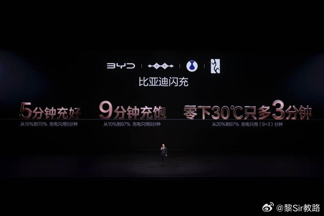 比亚迪闪充充饱只用9分钟比亚迪闪充零下30度12分钟充饱大V聊车