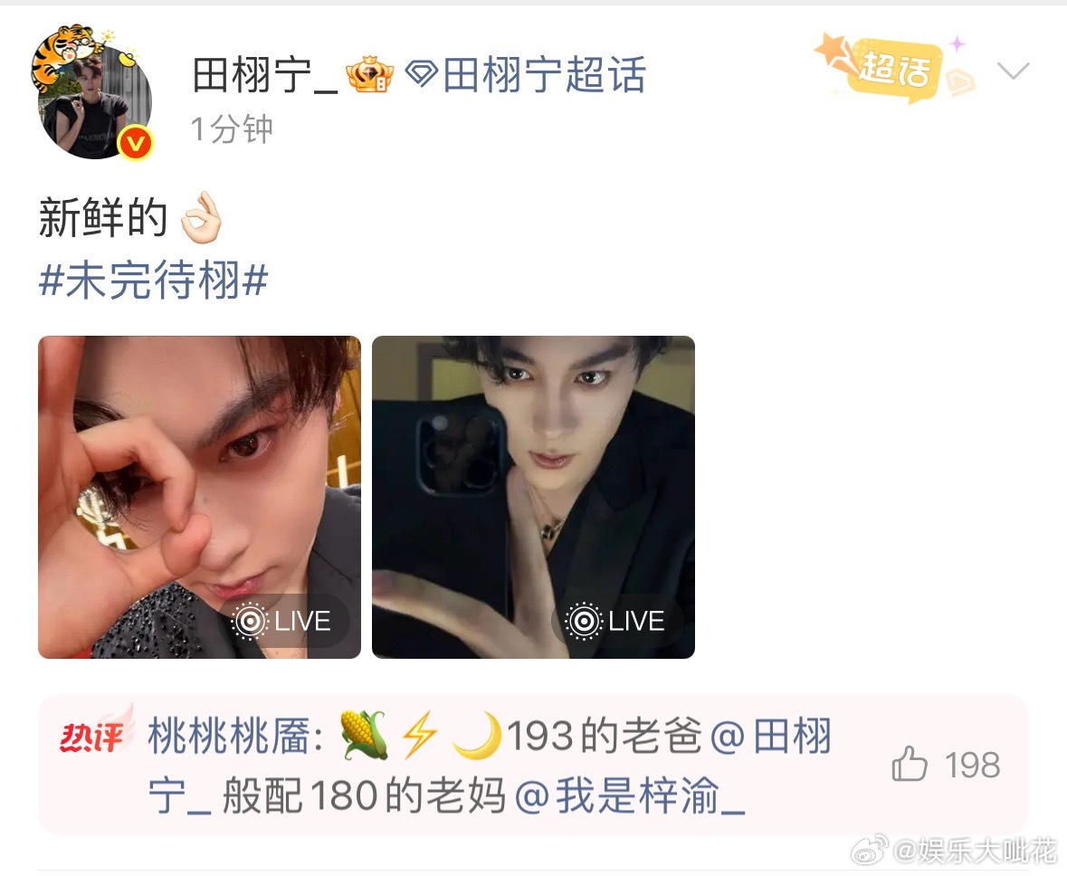 田栩宁新鲜的对镜自拍田栩宁新鲜的怼脸自拍田栩宁直播结束后发博了,新鲜的怼脸对镜