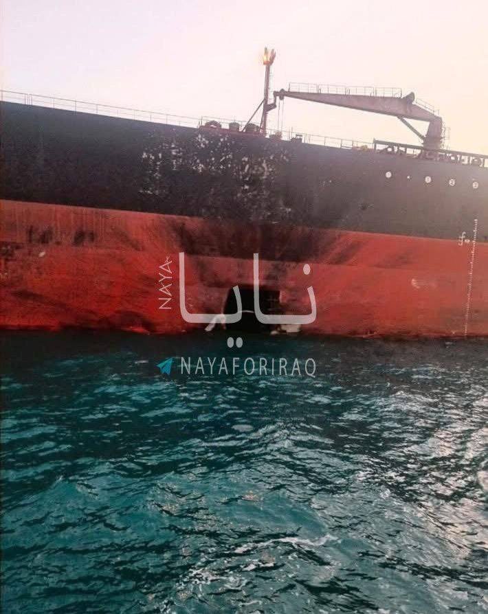 伊朗在伊拉克南部海岸袭击的一艘油轮的图像
