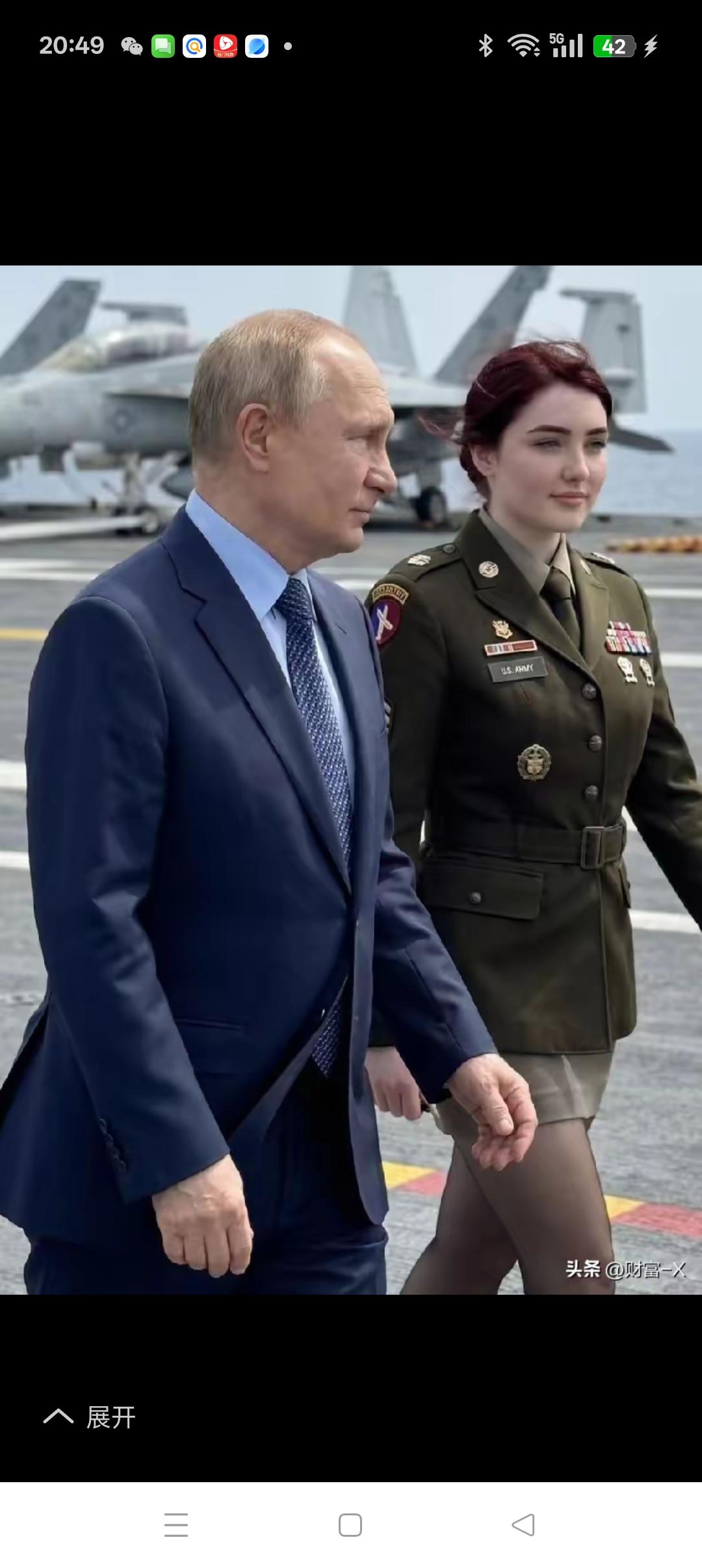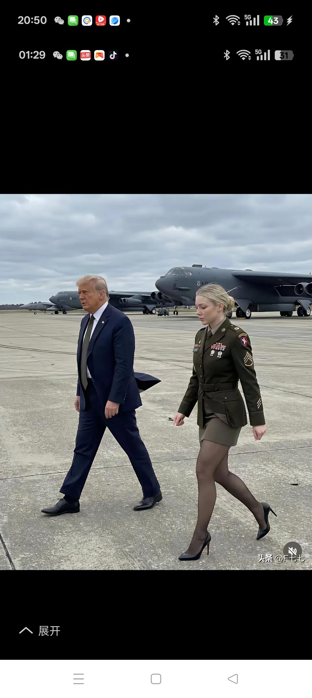 趣味相投的“双普” 特朗普与普金被人戏称“双普”,不仅英雄相惜,而且趣味相投,瞧,在空军基地视察时,身边都有颜值身材出众的女军官相伴,连走姿都很相似,只是拍摄角度不同而已,真是殊途同归的一对“活宝”。