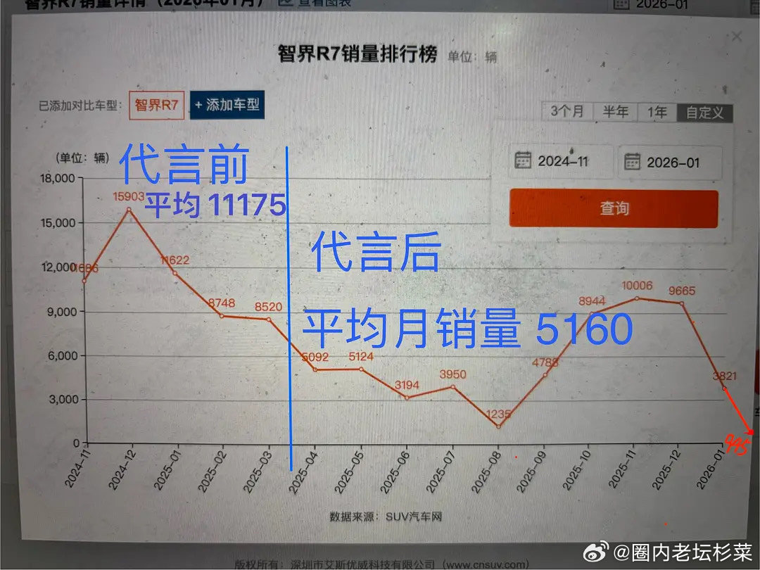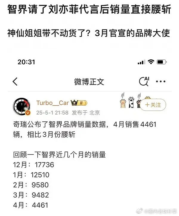刘亦菲代言智界快一年后,销量同比下降了 90%