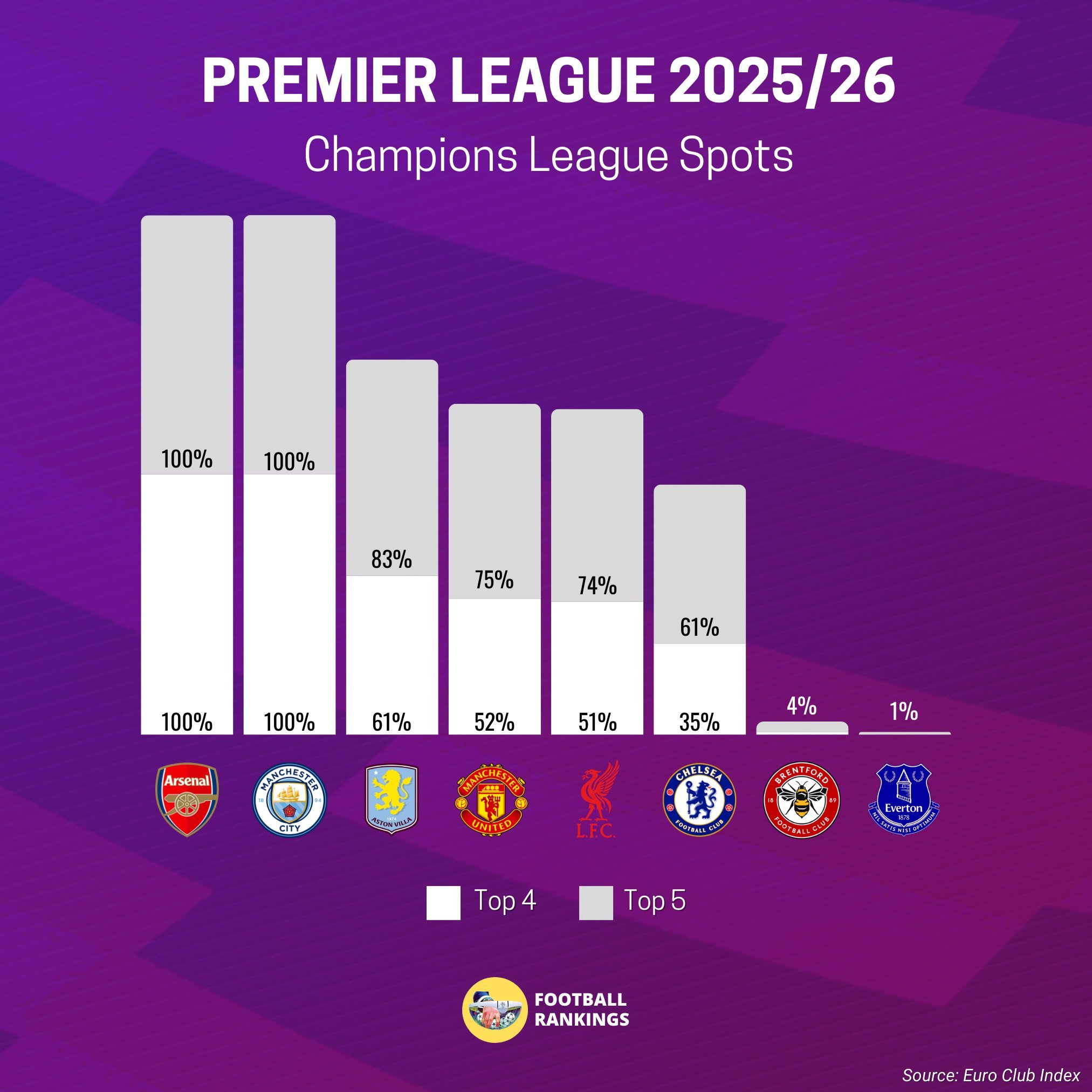 🚨 🏴 England are given a 100% chance to enter the Top 5 into the Champions League!