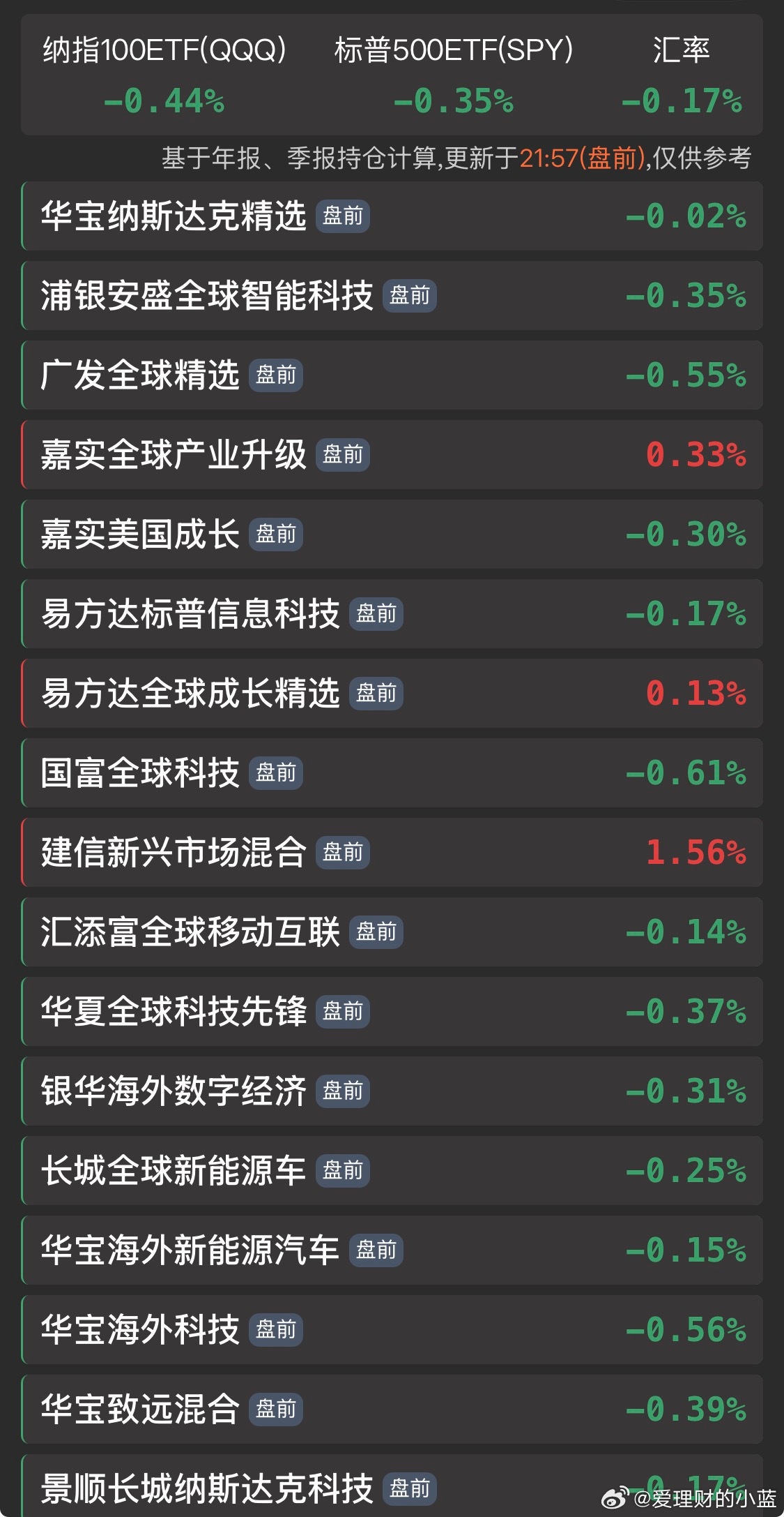 大部分基金更新出来了。恒生科技今天仍然跌0.97还是人吗?