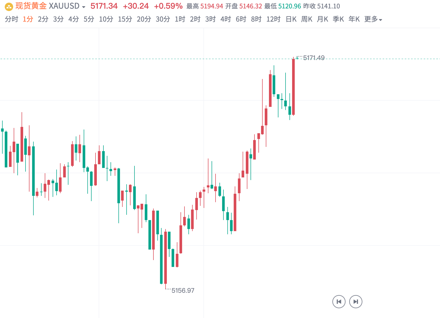 黄金5158多,抵达5171出局,获130点!