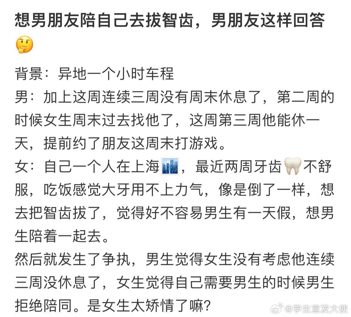 想让男朋友陪我去拔智齿,男朋友这样回答