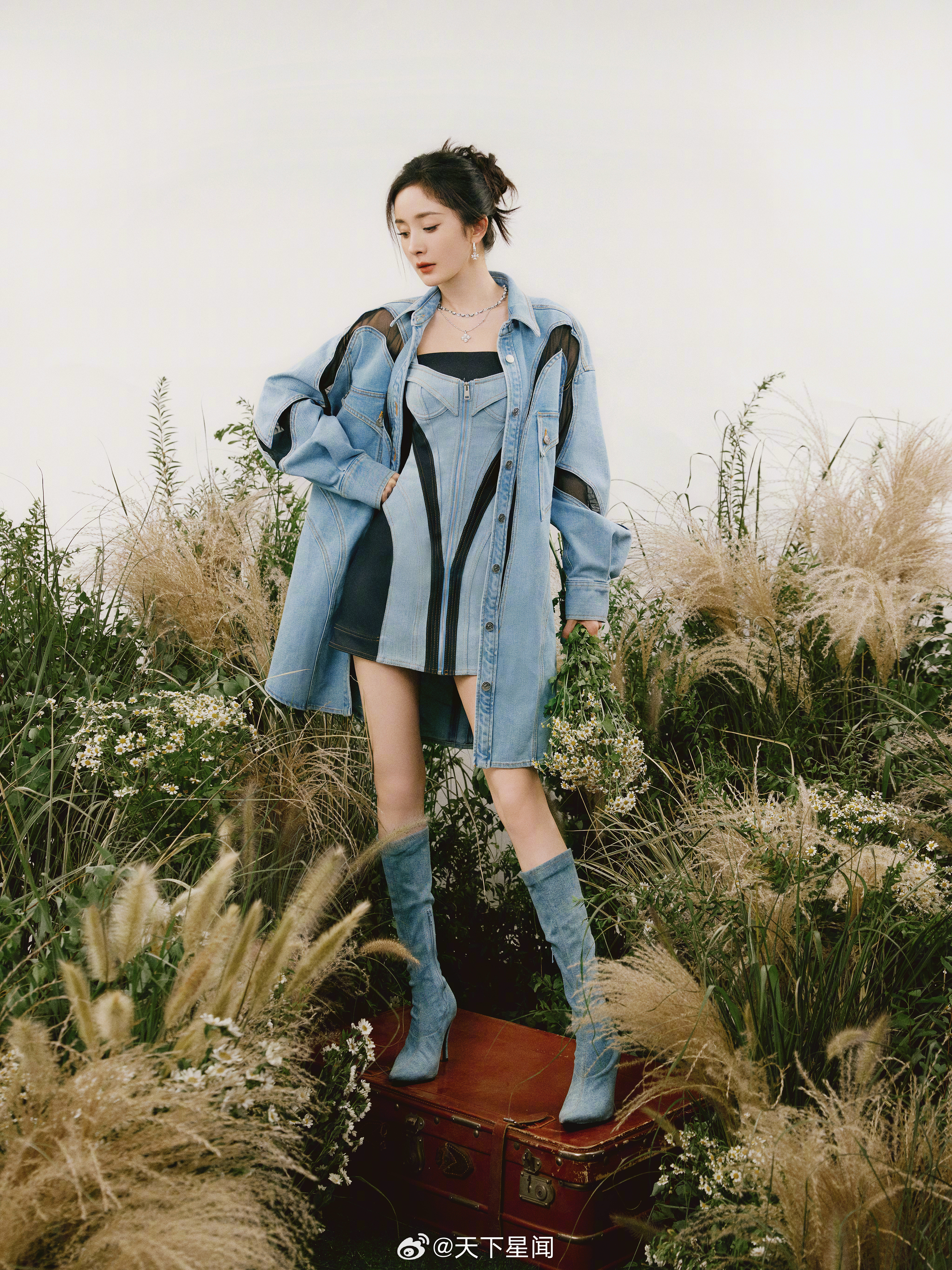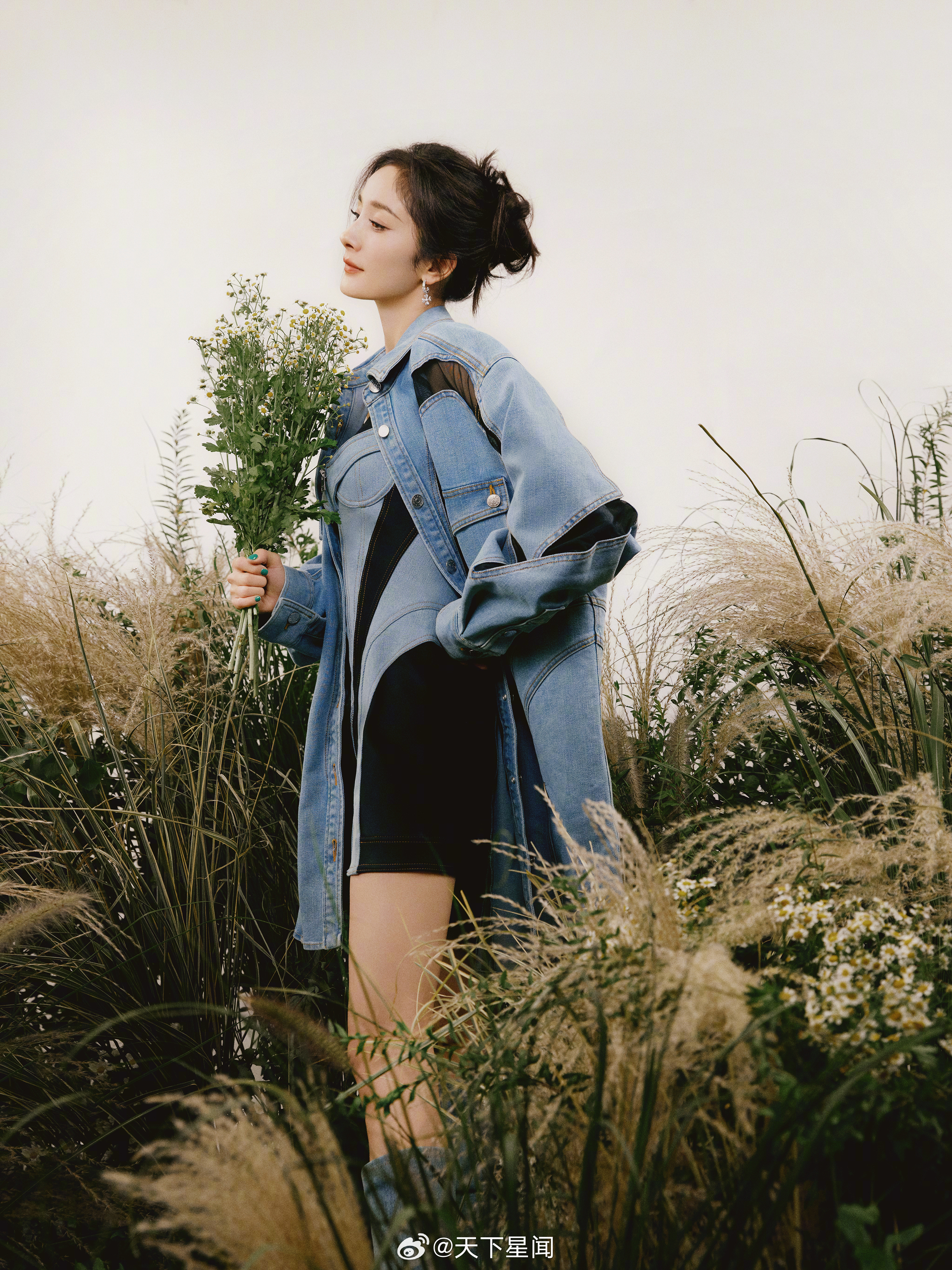 刘亦菲这条裤子挺养生,毕竟降温了肚脐眼必须护住啊