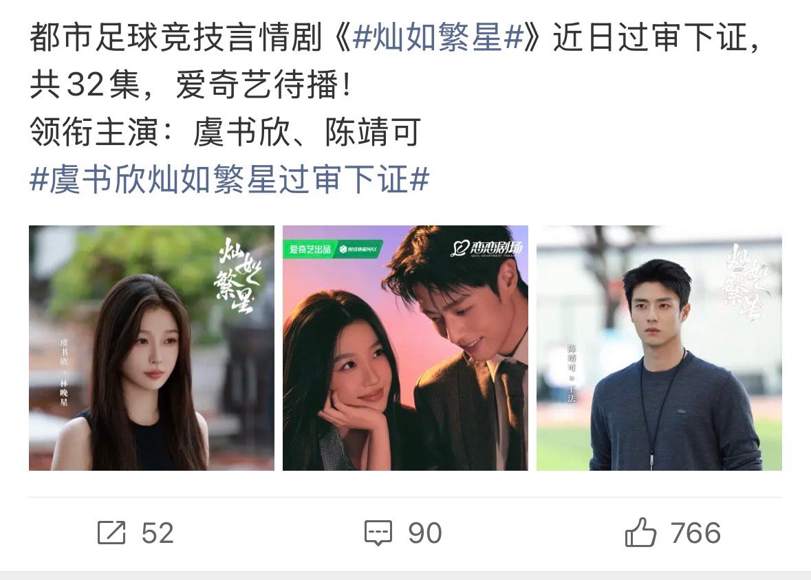 虞书欣出演的灿如繁星过审下证!
