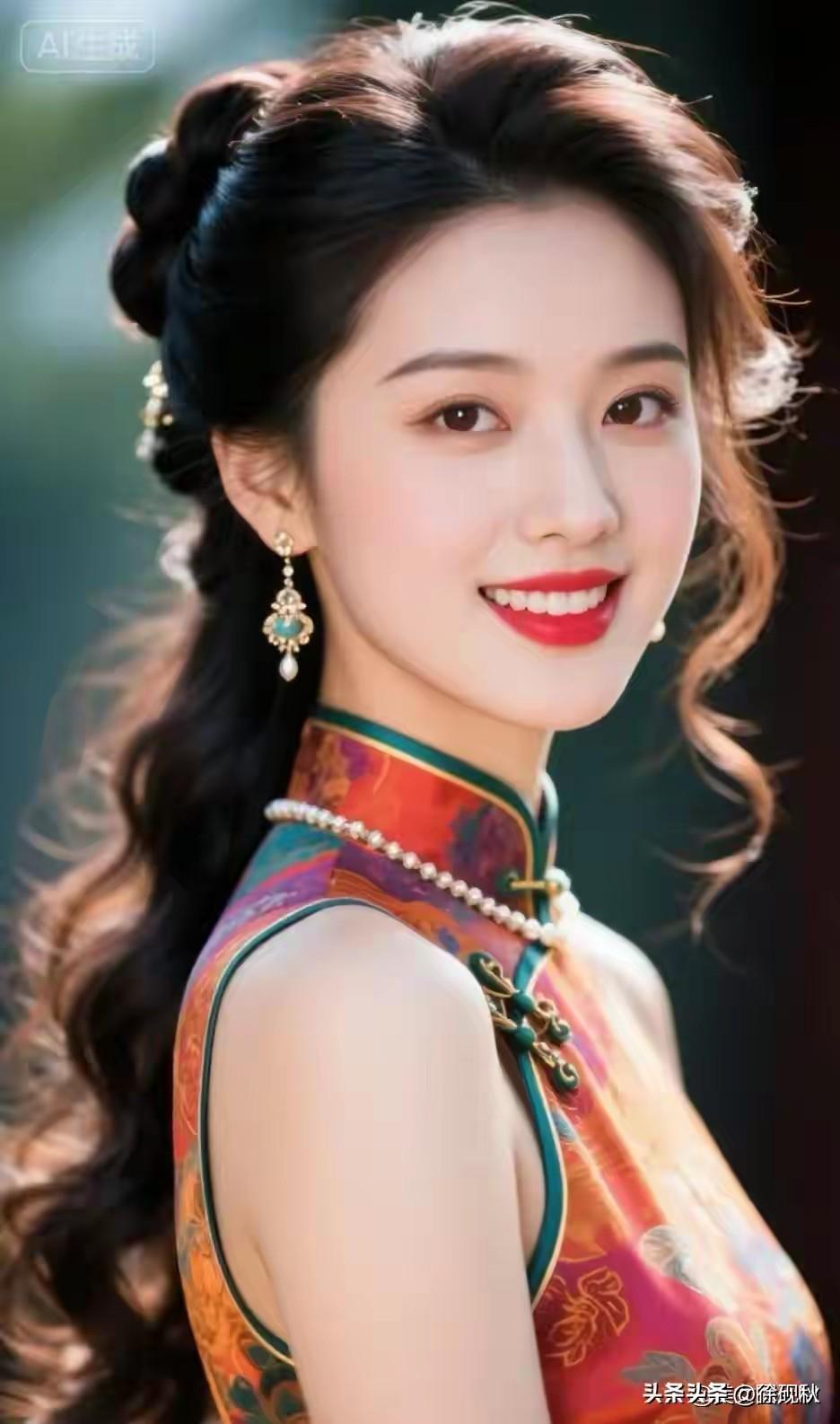旗袍雅致衬娇容, 青丝如瀑沾风情。 中国旗袍,端庄典雅。 历史悠久 ,文化传承。 国风古韵,推陈出新。 大家闺秀,小家碧玉。 修身裁剪,凸显风情。