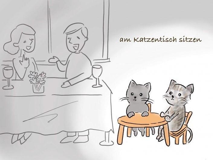 Am Katzentisch sitzen(坐冷板凳),这是一句常用的谚语,用来形容感到自己被冷落或忽视,无法参与重要决策或讨论,类似于被边缘化的意思。 来源: 德语版的“坐冷板凳”最早源自社会分层。这种阶层差异在共同用餐时尤为明显。过去,特别是在节庆场合,主桌通常是为重要客人或家人预留的。而孩子或地位较低的客人则被安排在Katzentisch(猫桌),即房间边缘,远离中心。这个成语后来逐渐演变为形容未能参与核心讨论或决策,感觉自己被忽视或被排除在外的人。 例句: Die kleineren Parteien fühlen sich bei den großen Verhandlungen oft wie am Katzentisch, obwohl sie wichtige Themen ansprechen. 尽管提出了重要议题,小党派在大规模协商中还是常常觉得自己像坐了冷板凳。 结语:不要让自己被忽视,并认识到每个人,无论力量大小,都能做出重要的贡献,这一点才是最重要的。没有人天生就该坐冷板凳。你有没有类似经历?你又是如何应对的呢?欢迎分享你的想法!