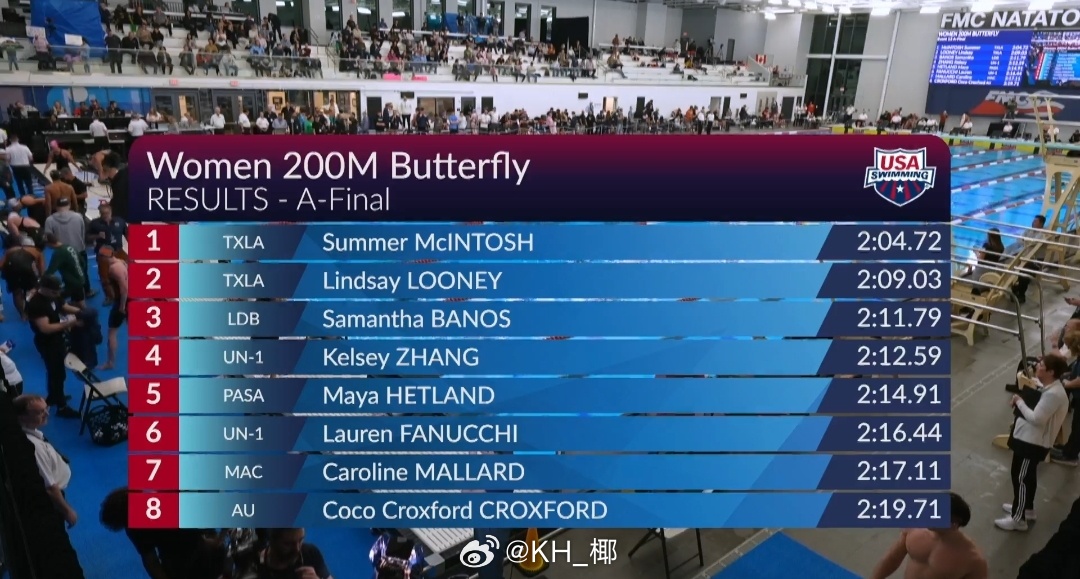 美国游泳系列赛维斯蒙特站女200蝶决赛Summer2:04.72