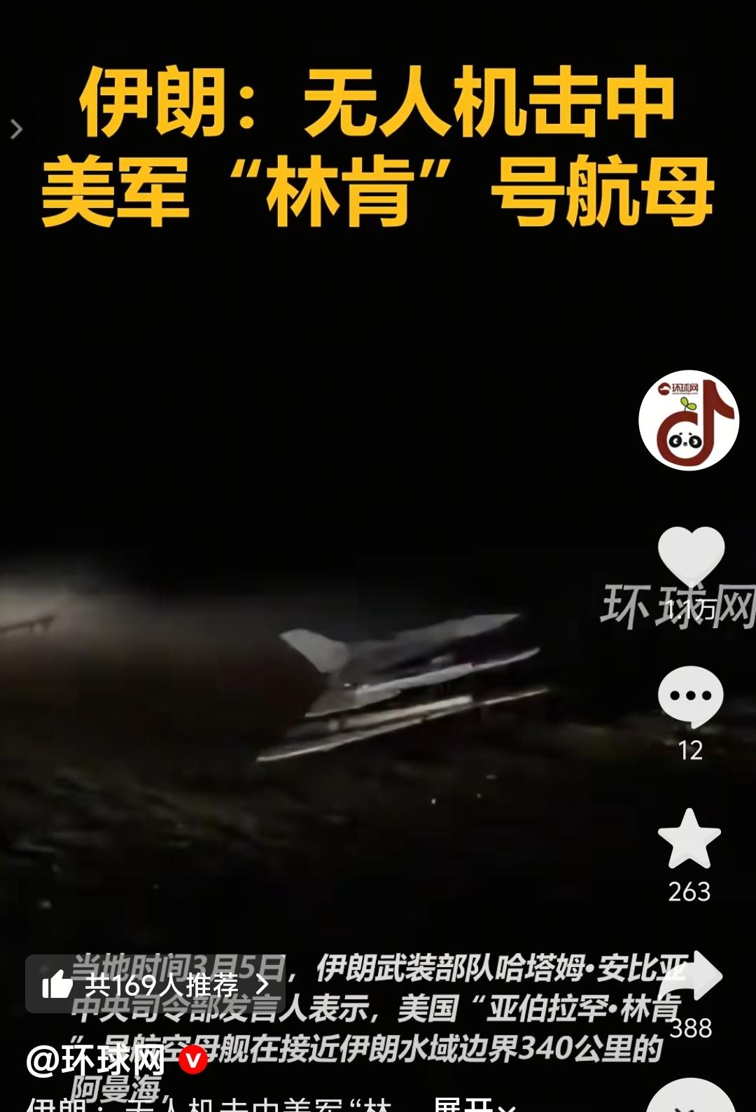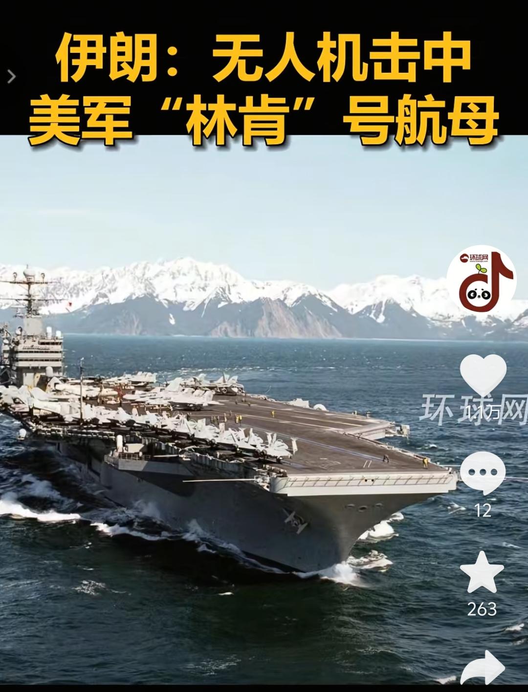 伊朗:美国林肯号航母被伊朗无人机击中。 值得注意的是,被无人机击中的美国航母是在距离伊朗水域边界340公里的阿曼海,被击中之后,林肯号航母迅速撤离,现在已经距离该水域超过一千公里。 击中美国航母的是伊朗伊斯兰革命卫队海军无人机。 美国以前总是吹他们的航母有多厉害,他们的航母舰队有多牛?现在看来,很多国家都可以击中他们航母,他们航母的防空系统也不怎么样,防御技术也不咋样。而且美国的很多航母都要在其他海域防守,根本不能,也不敢全部投入到对伊朗的打击中。每次航母经过无人机的袭击,都要经过很长一段时间的维修。所以说,美国也就只是一只纸老虎而已,表面看起来很凶猛,其实背地里已经是腐朽不堪,只要炮火足够猛,航母也可以被重创,击沉也不是没有可能。