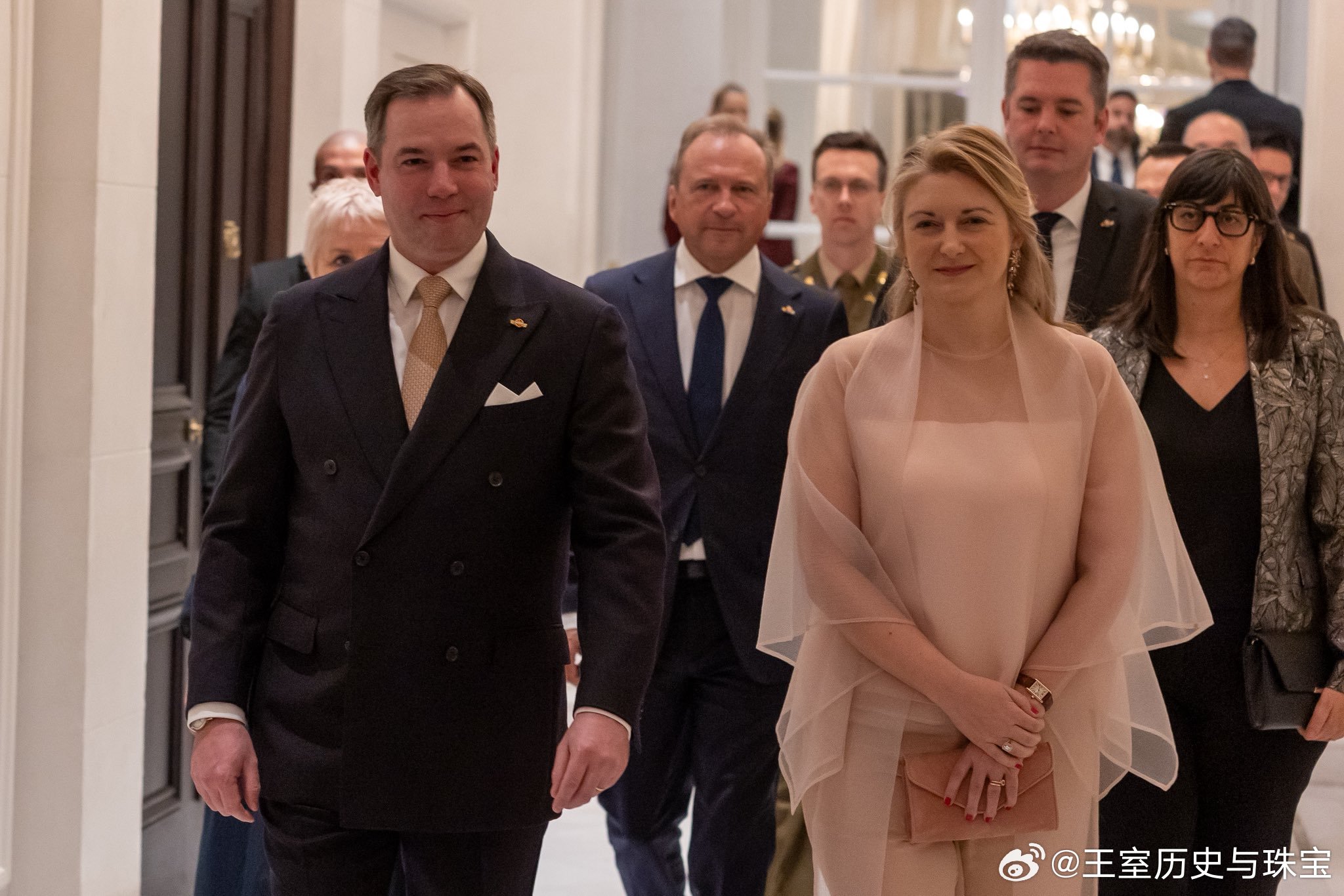 新闻 2026.3.5 卢森堡正式访问西班牙Day 1,卢森堡大公夫妇出席招待会活动,斯蒂芬妮的阔腿裤套装来自Natan,如果是长裙该多好啊。