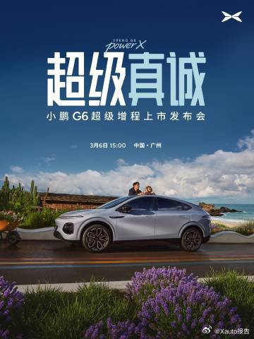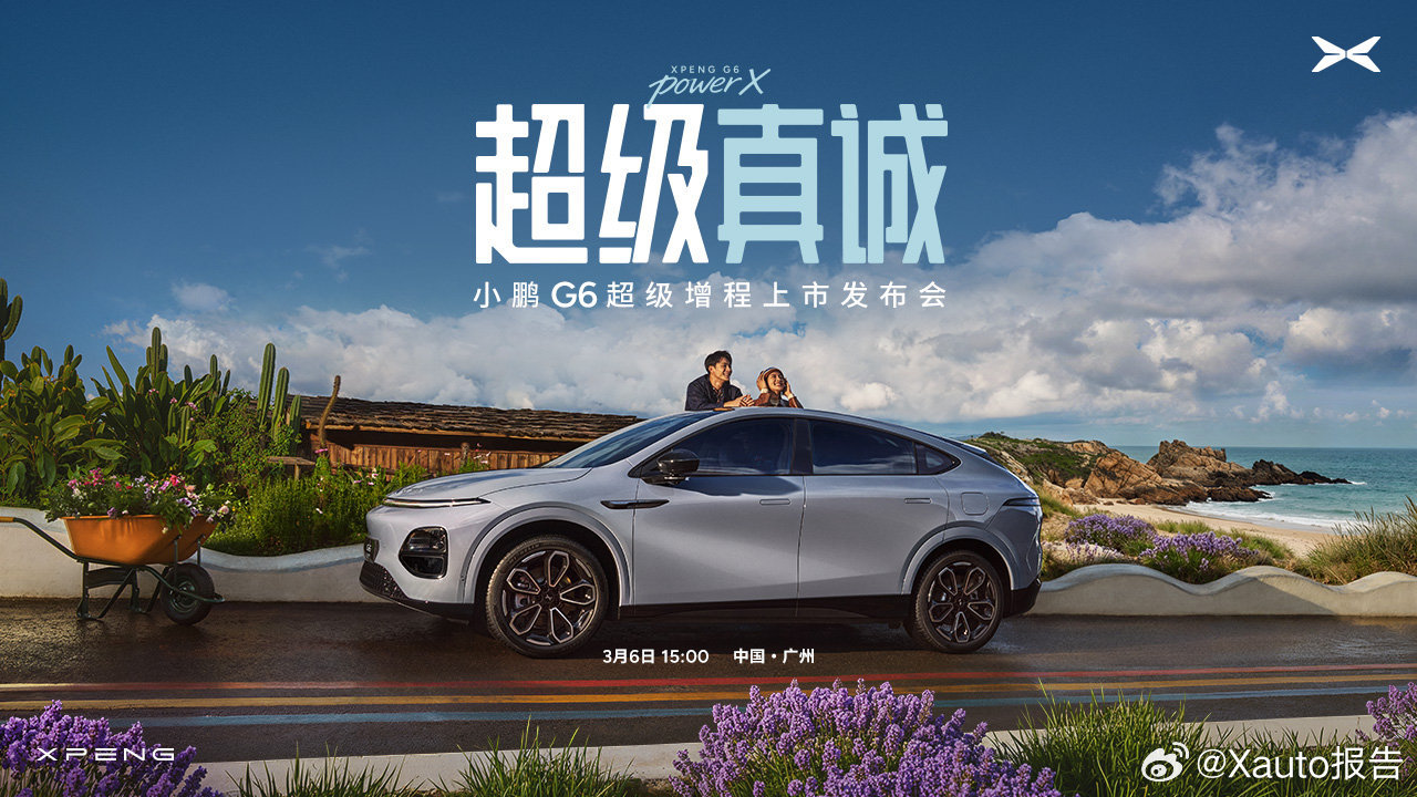 小鹏G6超级增程上市定档3月6日小鹏G6超级增程3月6日15:00正式上市,主打“六项全能”。该车综合续航1704km为全球最长,搭载第二代VLA,采用同级唯一800V+5C高压平台,在续航、智驾、安全、操控等方面均达同级天花板水准,为全球车型,超50个国家在售。小鹏G6超级增程六项全能一步到位小鹏G6超级增程今日上市小鹏汽车