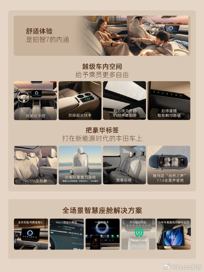 广汽丰田铂智7开启预售,权益价15.68万起,搭载丰田鸿蒙座舱,定位D级纯电旗舰。车型汇聚顶尖科技,兼具丰田品质,提供全能解决方案,还有预售限时三大权益。丰田铂智7预售权益价15.68万起丰田铂智7预售限时三大权益