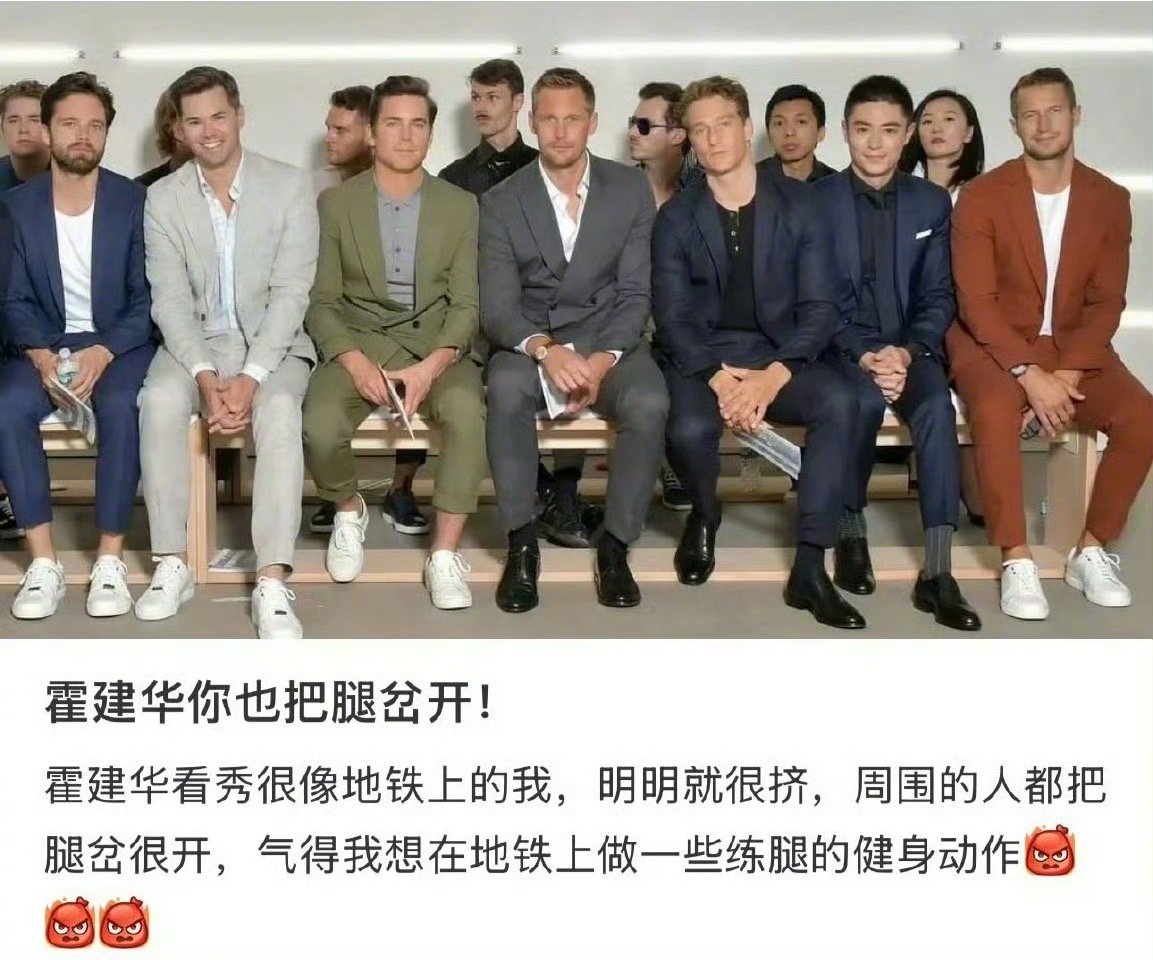 霍建华误入时尚圈的老干部 笑不活了🤣!霍建华看秀时,双腿并拢、双手平放在膝盖上,和旁边随性松弛的明星们形成了鲜明对比,仿佛是来视察工作的老干部哈哈哈,这端庄坐姿真的太有反差感了😂