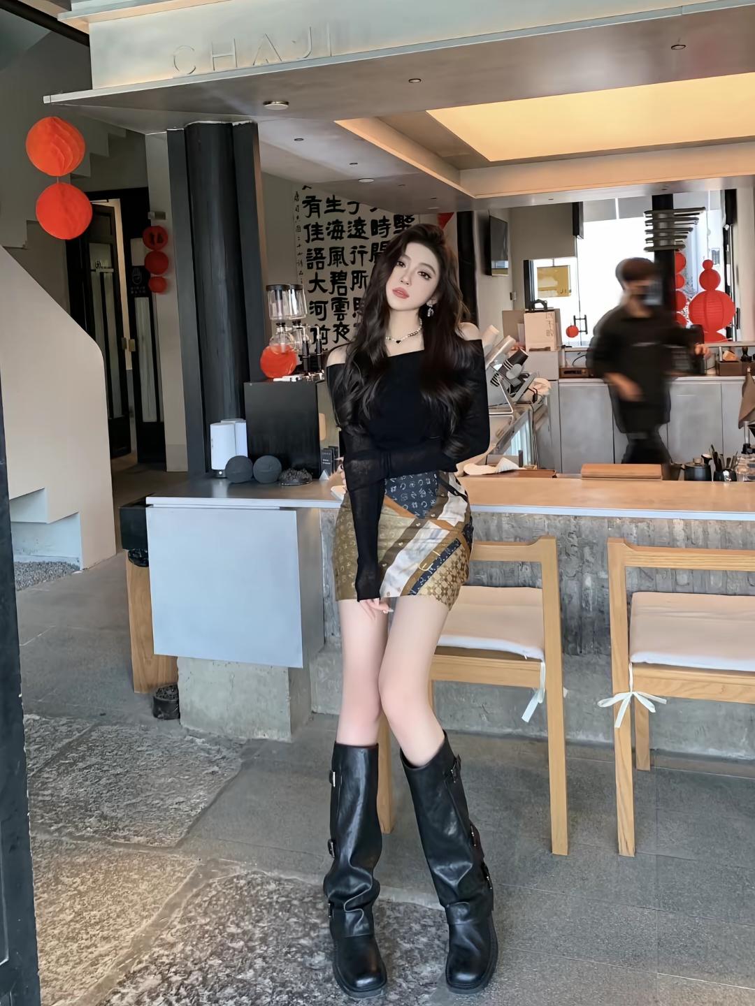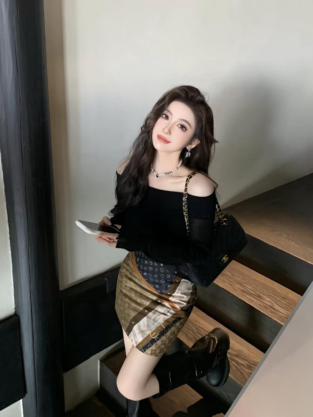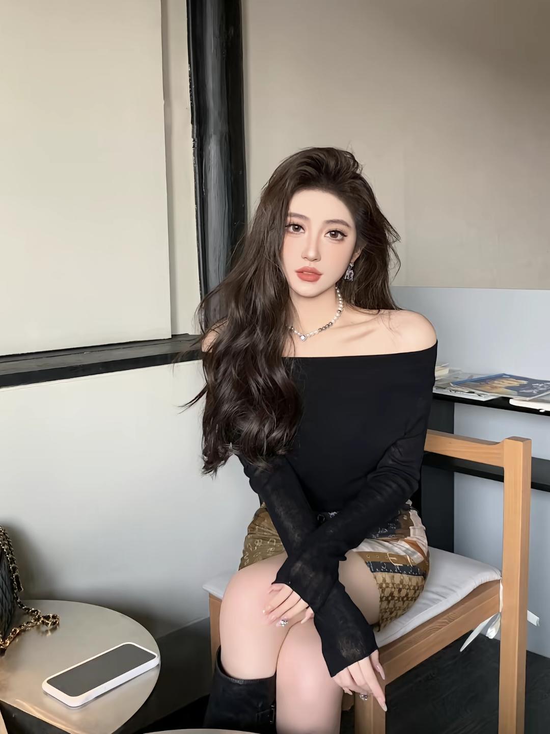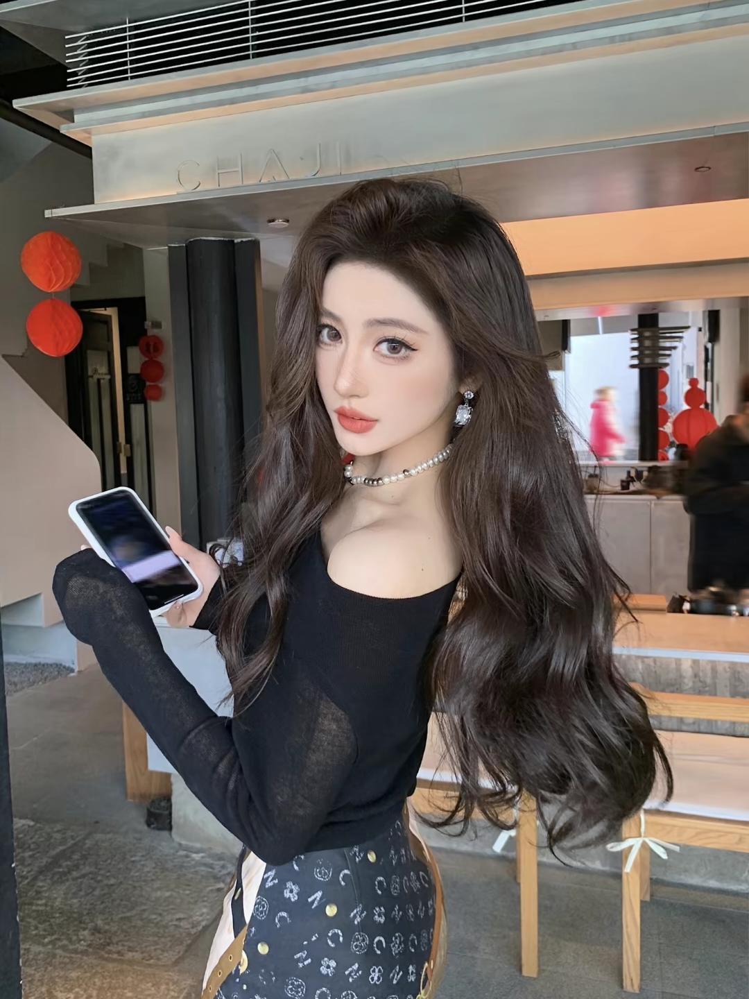 慵懒午后,黑发红唇,时尚穿搭,享受生活