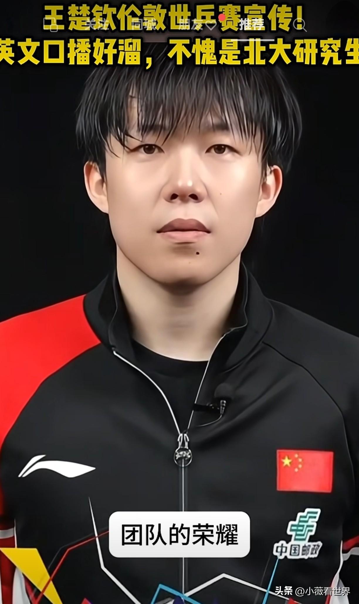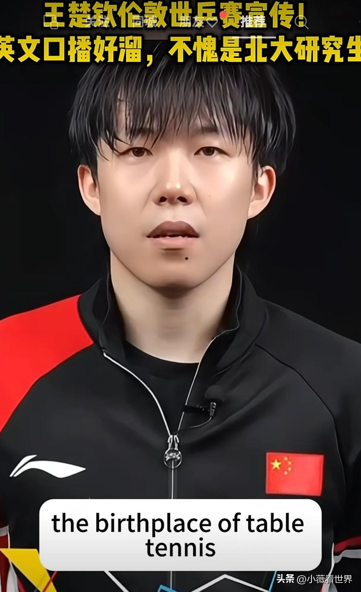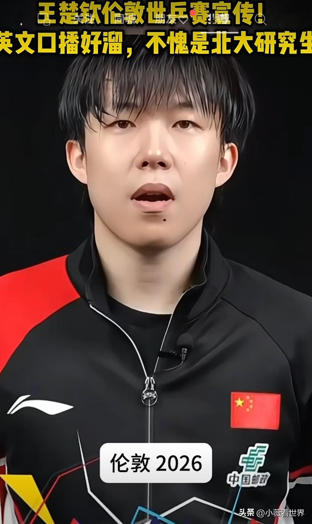 真为这样的王楚钦骄傲!刷到头哥现身伦敦百年世乒赛的宣传视频,发现一个不一样的他! 3月4日,2026年伦敦世乒赛团体赛官方宣传片正式发布,国乒选手王楚钦出镜亮相,以中英双语完成口播,向全世界观众介绍这项拥有百年历史的乒乓盛会。 赛场上他是叱咤风云的闯将,敢打敢拼,而在这里,他摇身一变,成了英语口播,不愧是北大研究生。 输过,赢过,从来没怂过,一直为国征战,绝不临阵逃跑,不委屈抱怨,比起金牌,我们更敬佩的是体育精神。 赛场是他的战场,家国是他的信仰,王楚钦用孤胆与坚守 ,书写新时代国乒运动员的家国担当。 更有细心网友注意到出镜时的王楚钦头发略显湿润,就纷纷调侃:这是刚结束训练就被拉来上"英文小课堂"了吗? 最近伦敦世乒赛的宣传海报已新鲜出炉,莎莎楚钦同框亮相,世乒赛还有三个月开打,祝愿头哥马到成功,龙马精神,再夺桂冠。