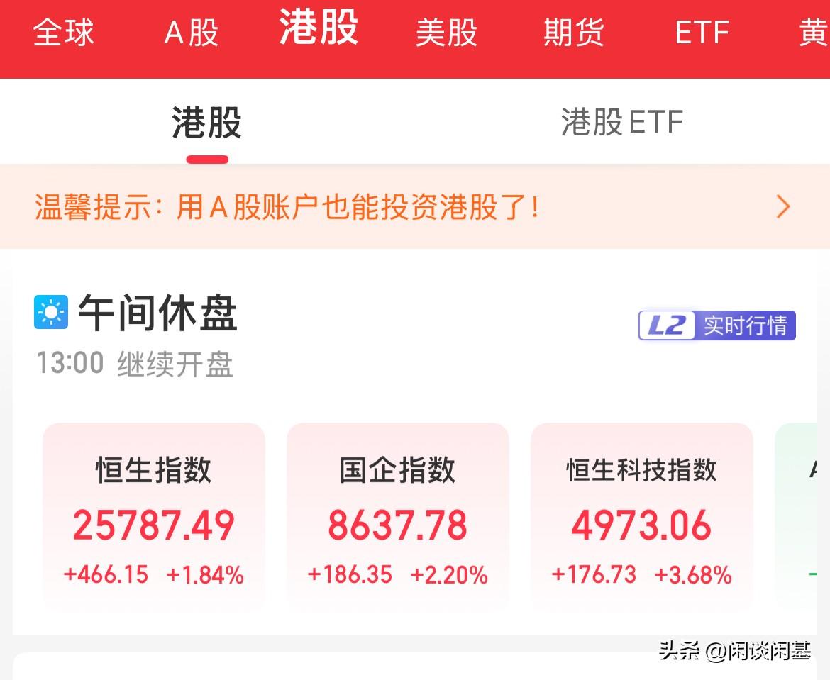 迟来的深情,就不知道是不是渣男,是一日夫妻百日恩,还是一次搞定,然后歇半个月,港股全线上涨,恒生科技走出了大涨3.68%,京东大涨超8%,阿里巴巴涨幅超4% 京东在昨日发布业绩报告超预期增长13%,在外卖不断减亏的良好预期之下,又表示派发现金股息14亿美元和30亿美元的股份回购,提振了市场情绪,今天港股京东开盘高开高走涨幅8%, 港股三大指数今天开盘高开高走,恒生指数涨幅1.8%,恒生科技涨幅3.7%,“伪科技”的外卖股也是集体走高,腾讯涨幅3.98%,阿里巴巴涨幅4.28%, 港股ETF也是集体拉升,港股恒生科技ETF涨幅3.10%,恒生科技指数ETF涨幅2.78%,港股创新药ETF涨幅3.46%, 昨天刚爆资金在抄底港股ETF份额,今天指数就开始拉升,昨天刚爆资金创近期最大卖出份额,今天又得拍断大腿, 就看看持续性如果了,是继续熊市走势还是有所改变,看着呗。