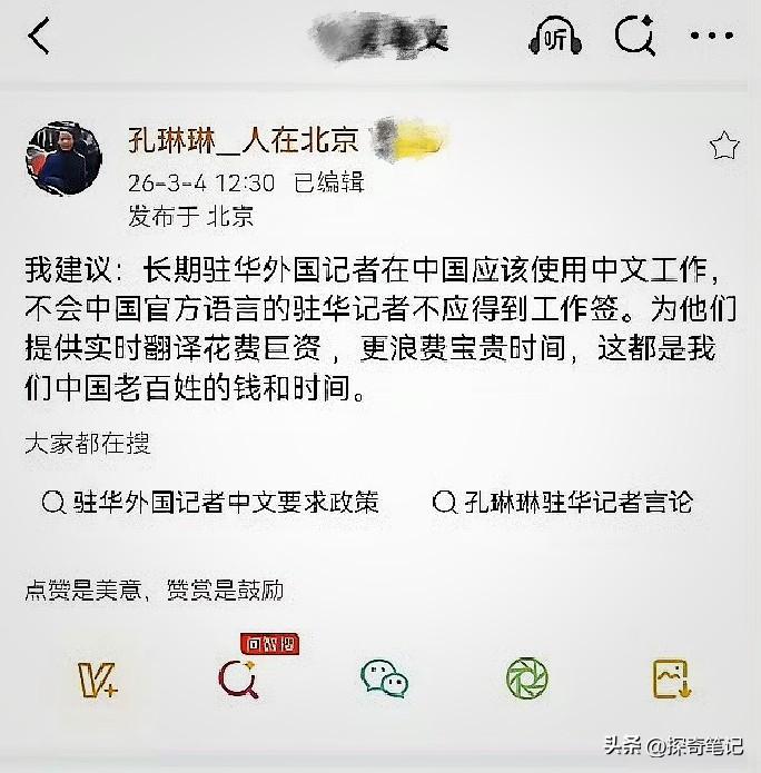 孔记者的提议,我们必须支持。那些趾高气扬的外国记者不懂中文,来咱们主场采访,还非得我们来配翻译,他们哪来的底气?咱们驻外的记者,哪个不是自己学好当地语言再去上任的。 语言就是一个国家的自信和底气,想在中国做采访、搞研究,就请先把中文学好。这不是我们不近人情,这就是最基础的相互尊重的对等原则。 你发现没有,现在很多地方的发布会已经不再强制配翻译了,这无疑是传递出了一个良好的信号。另外,还有越来越多的高铁站,也取消了外文标识——这不是封闭,是回归自信。想来中国,就该入乡随俗。与其惯着某些外国人的特权心态,不如把语言的门槛提起来。想听懂中国,就得学会用中文来问。你支持这种做法吗? (024年以来已有北京南、南京南等多个高铁站优化标识系统,逐步减少非通用外文标识;同时,已有多场正式发布会也已取消英文翻译,采用中文为主、交传为辅的形式。)