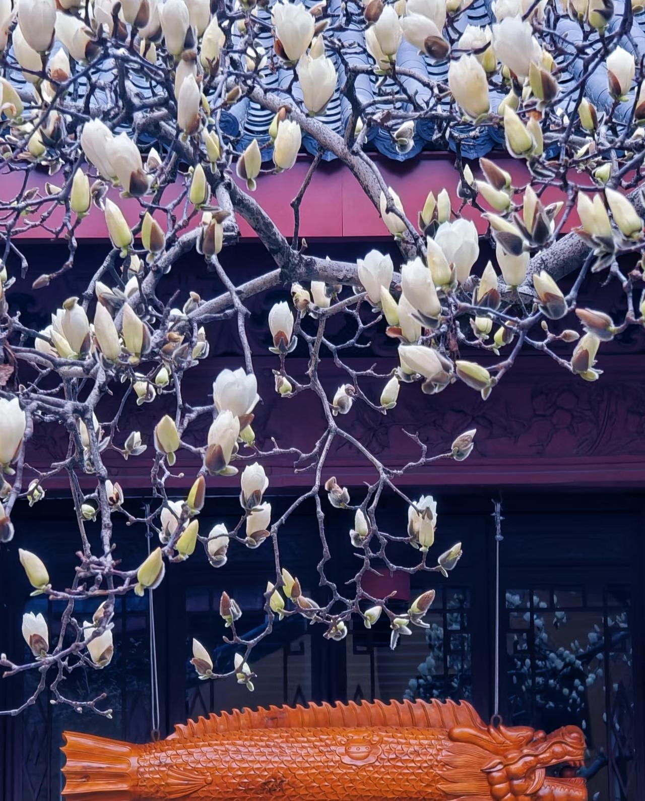 3.6实拍丨法喜寺玉兰花盛开啦! 上周刚去了法喜寺 去看了那棵500岁玉兰树的开花情况 当时还只是满树花苞 没想到才过了不到一个星期 就已经完全盛开 想来的朋友们这两天就可以动身了 玉兰花虽看起来很惊艳 但花期只有短短的不到10天 所以千万别错过了 玉兰花 手机随拍玉兰花 法喜寺 法喜寺玉兰花 玉兰花街道