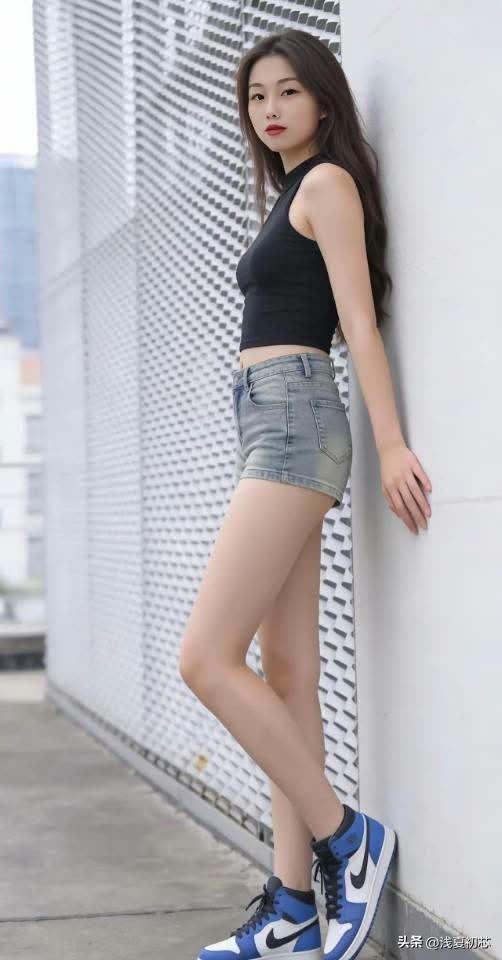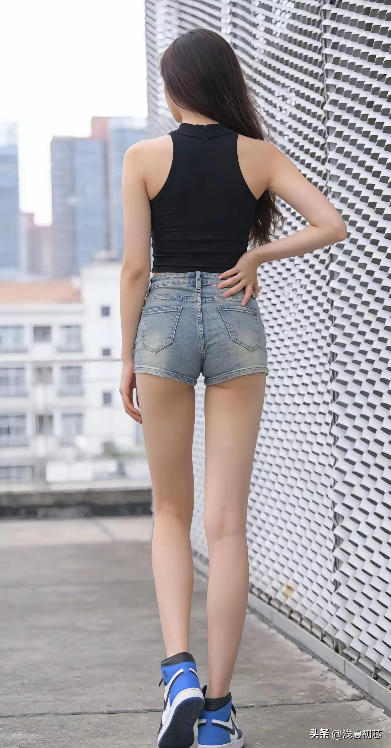 都市少女风穿搭指南,黑色背心+牛仔短裤,简约时尚!
