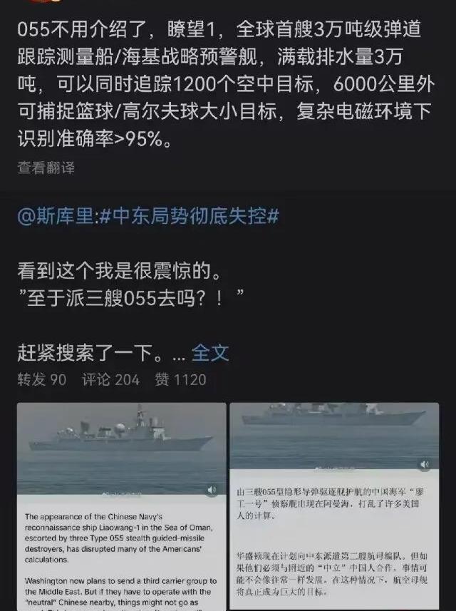 辟谣!真是造谣无底线,偏偏却还很多人信!三艘055根本不可能现在去中东,怎么现在去趟这个浑水干嘛?先不说现役的055只有八九艘,训练和战略任务其实很重,根本抽不开身去中东凑热闹,而且军舰远洋航行肯定要有综合补给舰跟随保障才行 ,单单只有055去可能吗? 这类谣言通常是蹭中东热点局势,利用大众对海军装备的信息差,用夸张的参数、伪造的信源编造虚假的“大国威慑”内容,本质是博眼球,既不符合客观事实,也不符合中国海军的实际部署逻辑,大家一定要谨慎识别。