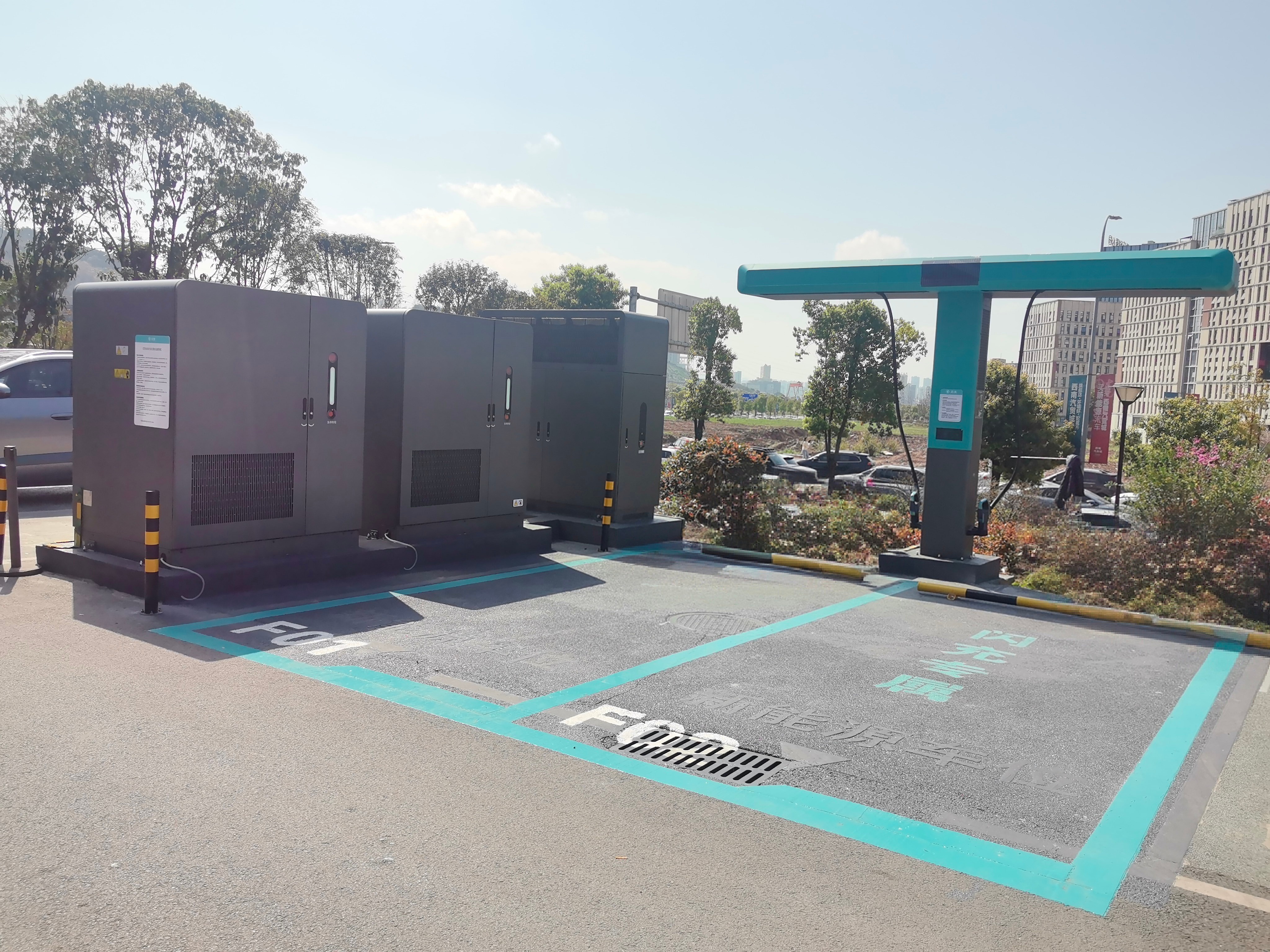 举例,在一个只有「100kW」普通桩上,用同样的线路,不增加铜丝和变压器,不增加额外电网容量,,比亚迪闪充桩就能把一个100kW的普通桩,变成闪充桩,功率瞬间放大10倍,不仅突破了电网容量的限制,还不会伤害电网。
