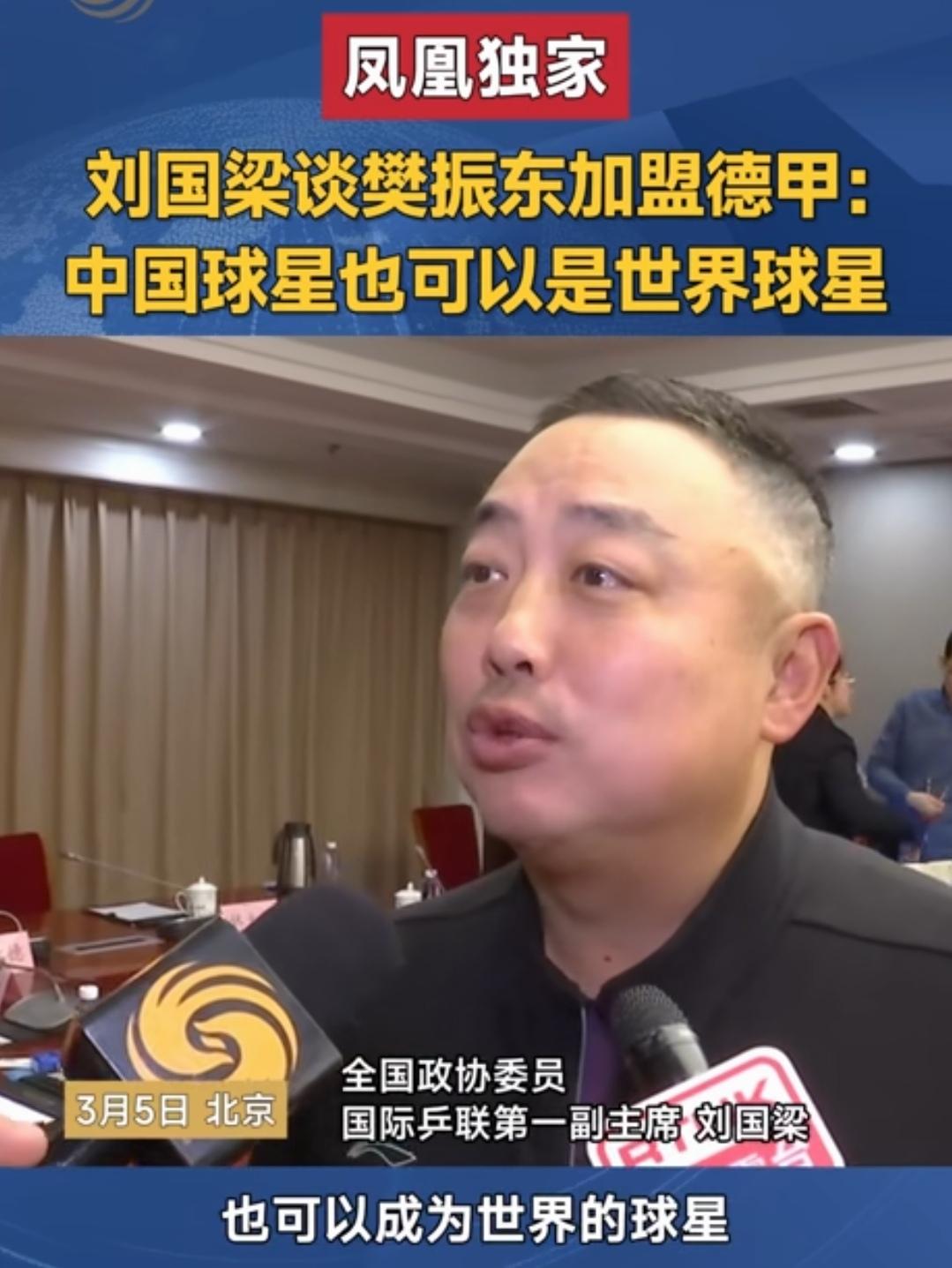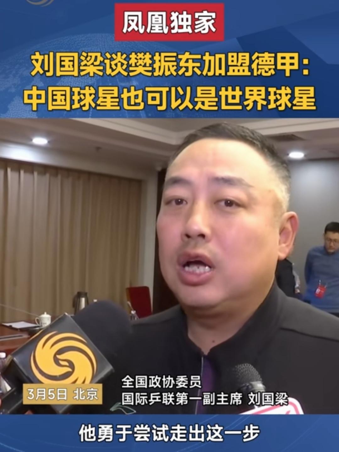 我们的球星,也可以成为世界的球星。 如何看待樊振东签约德国俱乐部,在当地收到了极高的礼遇,然后现在又要回归国家队,就此事刘国梁接受了凤凰卫视独家专访时回答了记者提问的问题。 刘主席说,这就是体育的魅力,体育就应该请进来、走出去,我们的球星,也可以成为世界的球星,我觉得他(樊振东)做得很好,特别作为一名优秀的运动员,在完成了自己的大满贯,或者职业生涯的阶段性胜利之后,他勇于尝试走出这一步,我觉得值得大家学习,因为体育无国界,你只要打得好,你在体育运动当中是一个最好的体育软实力交流。 其实,运动员走出去的樊振东不是第一人,是因为樊振东走出去的时间,可能很多球迷会认为樊振东刚刚拿了奥运会男单冠军,其实,备战奥运会是特别消耗运动员的体力和精力的一件事,可以说樊振东拿了奥运冠军职业生涯已经非常完美,距离2028年洛杉矶奥运会还有相当长的一段时间,所以巴黎奥运会后无论是陈梦还是樊振东都选择了暂时离开了赛场一段时间,而且作为前奥运冠军,参加三大赛有优先权,陈梦除了全运会,没有参加其它赛事,而樊振东经过了短暂的休息,只是换了一个环境打球,而且国家队的大门始终对他是敞开的。