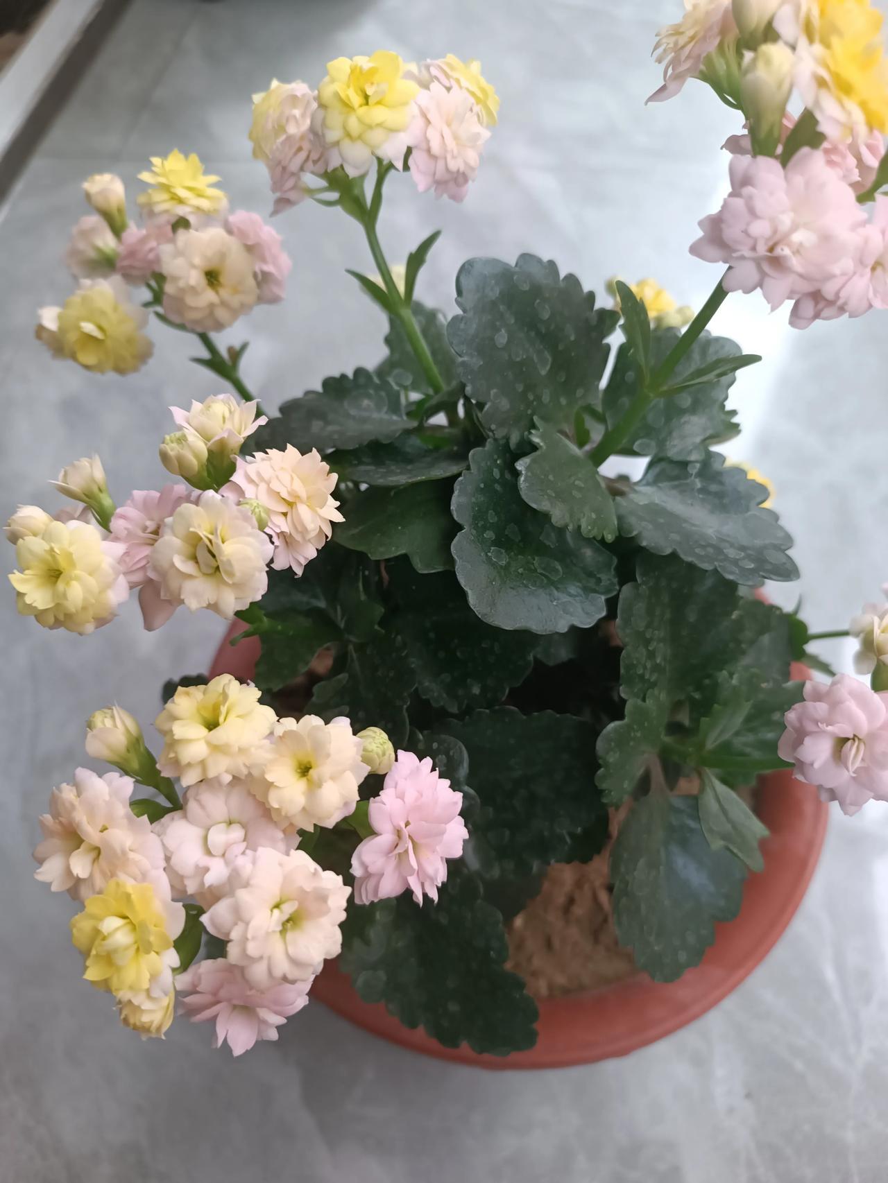 长寿花又名圣诞伽蓝菜,属景天科多肉草本。株型小巧紧凑,肉质叶片肥厚翠绿,四季常青。冬春繁花满枝,小花簇拥成团,红粉黄白花色绚烂,花期绵长数月。寓意健康长寿、团圆美满,是热门年宵花卉。它耐旱易养,新手也能轻松爆盆,装点居室满是生机暖意。 养花日常 多肉养护 室内绿植