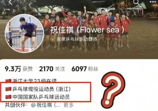 祝佳祺社媒的简介资料显示他是中国国家队乒乓球运动员。