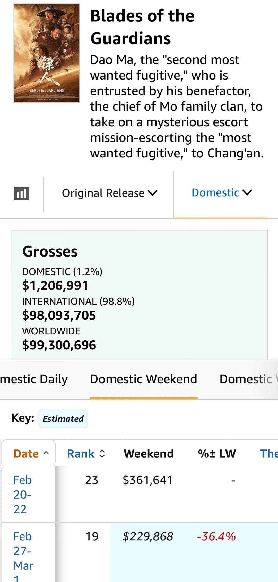 你敢信? 北美影院直接砍半排片,《镖人》次周末票房居然只跌36%! 首周末还在184家影院开画,次周直接砍到83家,少了一半还多。 但票房仅跌36.4%,捞了22.98万美元,场均收益反倒逆势上涨,上座率直接拉满。 目前累计票房突破121万美元,业内估摸着最终能摸到150到160万。 烂番茄口碑稳得一批,全靠硬派武侠画风和大唐西域的狠劲,精准戳中海外华人和本土武侠死忠的爽点。 不是主流市场的流量盛宴,而是垂直圈层的信仰坚守;不是刻意讨好的文化输出,而是硬派实力的美学突围。
