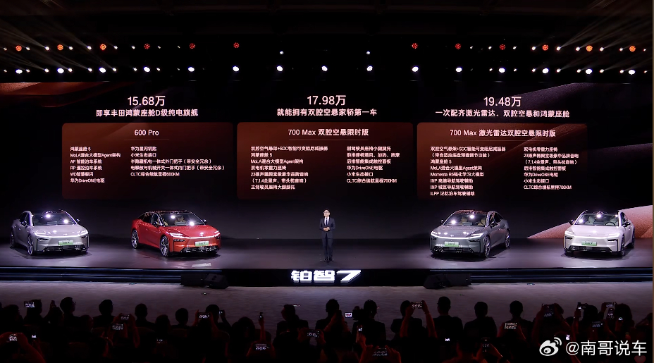 铂智7,只要15.68万起,就两个字:真香1、华为深度赋能:DriveONE电驱系统+ 满血版鸿蒙座舱5.0,还有Momenta R6智驾系统(要是华为乾崑智驾,那就是华为全家桶了)2小米生态接口:后排兼容小米Pad控制空调、氛围灯等。3、还有双腔空悬+零重力座椅+后排电动靠背调节+雅马哈音响与双层夹胶玻璃你能想到的都在这里了!