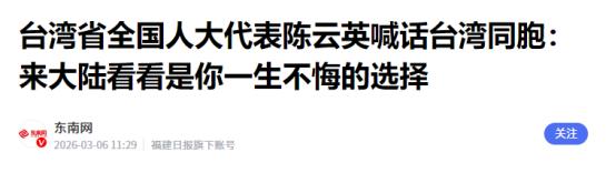 冲破黎明前的黑暗!台湾省代表吁台胞为自己来一次大陆,做无悔选择 赖清德当局上台后动用行政、司法、舆论等多重手段,无所不用其极阻挡两岸民众正常往来。他们拒不解除赴大陆旅游的 “禁团令”,还调升所谓旅游 “橙色” 警示。 他们阻挠两岸客运直航航点全面恢复,让两岸同胞往来成本增加、耗时变长。更过分的是,他们把暨南大学、北航等 10 所大陆高校列入禁止交流名单,禁止岛内学校与这些高校开展任何合作。 他们甚至要求公职人员签订未申领大陆身份证件的 “具结书”,对申领大陆证件的台湾民众进行限阻恐吓。他们滥用司法资源迫害参与两岸交流的村里长,制造 “寒蝉效应” 让台湾民众不敢轻易踏足大陆。这些做法根本不是为了台湾民众的利益,纯粹是为了保住自己的政治私利。 陈云英代表连续担任五届全国人大代表,过去一年她跑了 11 个省市。她走到哪里都和当地台生、台商座谈,认真倾听大家的心声和遇到的问题。她还建议交通、民航等窗口单位,对首次来大陆的台湾同胞道一声 “欢迎你回家”,这份用心让每个台胞都能感受到亲人般的温暖。 大陆的发展机遇从来不对台湾同胞设防。来自台湾的徐博翎带着英国剑桥大学和德国亚琛工业大学的双博士学历来到苏州。 她在苏州大学组建团队研发体外磁悬浮人工心脏,创立的公司如今已申请超过 350 个国内外专利,三款产品成功开展临床应用,让无数急重症患者看到希望。国家对高端医疗器械产业的扶持和良好的营商环境,让她的创业梦想彻底落地。 云南的陈俞帆接过父亲的蝴蝶兰事业,在大陆政策扶持下专注育种和智能化种植。他的公司现在拥有超过 100 个蝴蝶兰品种,年销售近 200 万株,八成以上产品远销海外。大陆庞大的市场潜力和完善的产业链,让这份 “美丽经济” 实现两岸共赢。 福州的邱彬平带着地理科学专业知识,加入两岸青年乡建乡创团队。他和伙伴们挨家挨户沟通村民,挖掘当地文化打造特色文创产品,还开微店助力农产品销售。在政策支持下,他们让多个古村落焕发新生,邱彬平自己也成为两岸文化交流的重要桥梁。 “00 后” 台湾姑娘王檍芠在中南大学读完四年本科,顺利当选商学院学生会干部。毕业季她收到三家企业橄榄枝,最终选择成为电商企业市场管培生。她直言大陆就业政策为台青提供了公平赛道,实习机会和职业晋升都与大陆同学站在同一起点。 这些真实发生的故事,民进党当局从来不会让台湾民众知晓。他们只会反复炒作 “大陆威胁论”,编造 “高铁没靠背”“吃不起榨菜” 这类低级谣言。可大陆高铁运营里程早已突破 5 万公里,建成世界上规模最大、现代化水平最高的高速铁路网。台湾网友看到相关新闻后,纷纷留言 “与有荣焉”,期待搭乘高铁横跨台湾海峡。 福建向金门供水工程已经稳定运行多年,通电、通气、通桥的前期技术准备基本完成。金门民众深切感受到背靠大陆的便利,他们的生活质量因两岸融合发展得到实实在在的提升。这些民生实事,民进党当局却刻意淡化甚至抹黑。 林启民在杭州创业 12 年,从一无所有的台湾青年成长为拥有 70 多家连锁店的企业经营者。他的公司吸纳 600 余名残疾朋友就业,还组建公益团队为来大陆的台湾同胞提供服务。他说大陆同胞把他当亲人,杭州 “我负责阳光雨露,你负责茁壮成长” 的营商环境,让他的事业稳步发展。 台湾雾峰林家第九代林铭聪带着家人回到福建漳州寻根。他看到家族古厝被修缮成迁台记忆展示中心,深刻体会到 “两岸本来就是自己人” 的血脉亲情。林家先祖代代传承的爱国精神,在寻根之旅中得到更真切的延续。 两岸同胞同根同源,共同的文化基因和民族情感从来没有被距离隔断。民进党当局的阻挠只能是暂时的,他们无法阻挡两岸交流的历史潮流。大陆的大门会一直敞开,各项便利政策还会不断完善。 台湾同胞来大陆不需要复杂的理由。为了看看祖先生活的土地,为了寻找更好的发展机会,为了结交真诚的朋友,都可以勇敢出发。这里有飞速发展的城市,有底蕴深厚的乡村,有公平竞争的舞台,有温暖人心的真情。 陈云英代表的呼吁发自肺腑。她见证了无数台胞来大陆后的转变,也深知每个台湾同胞都值得拥有更广阔的人生。2300 万台湾同胞中还没来过大陆的朋友,不妨为自己做一次决定。亲身踏上这片土地,感受真实的大陆,所有疑虑都会烟消云散。 黎明前的黑暗终将过去。两岸融合发展的大势不可阻挡,祖国统一的历史进程无人能挡。台湾同胞来大陆的每一步,都是在为自己的未来铺路,都是在书写两岸一家亲的美好篇章。这个选择,值得每个台湾同胞用一生去珍惜。