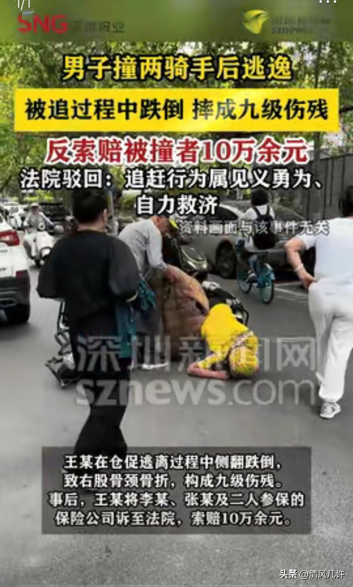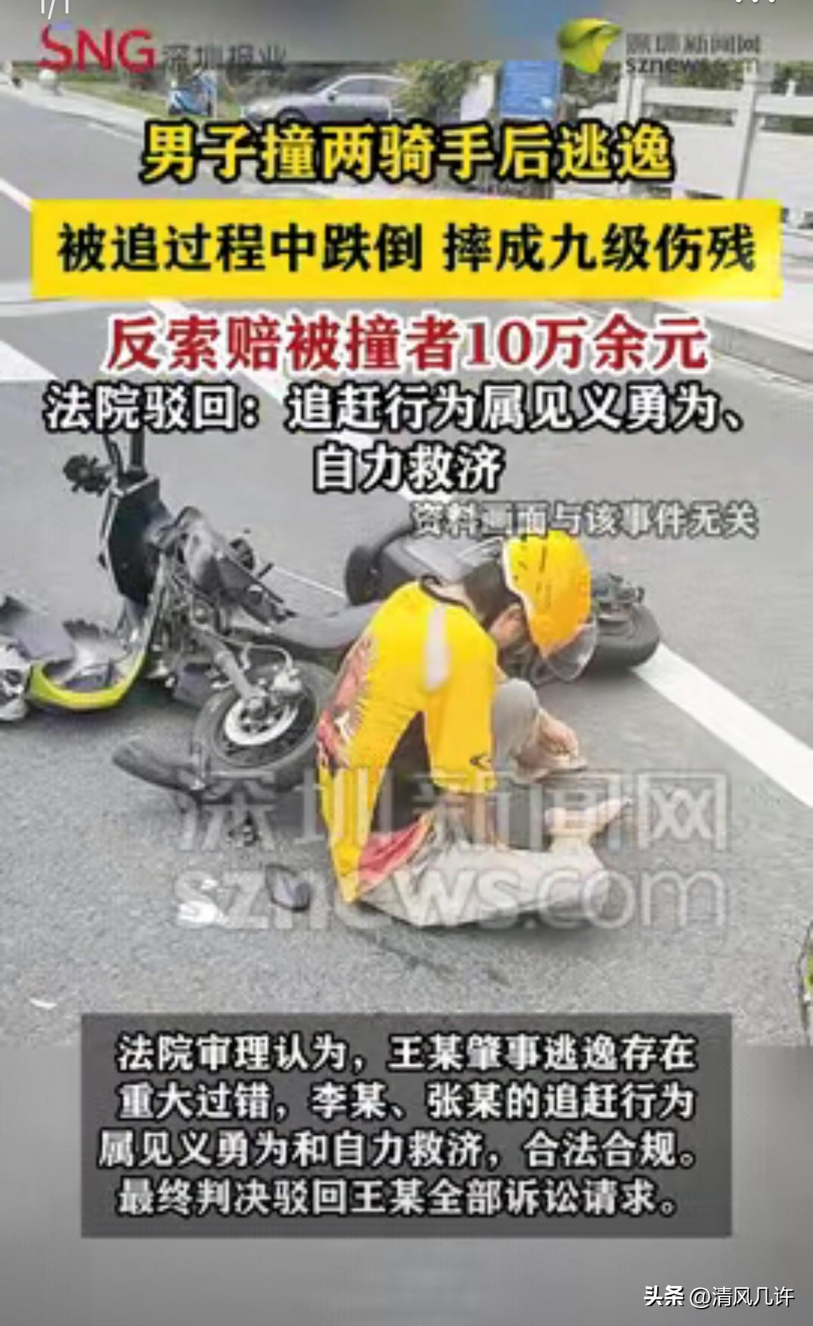 “林子大了什么鸟都有!”江苏泰州,一外卖小哥送外卖时,不慎被驾驶三轮车男子撞倒在地。随后,男子没有片刻停留,立马发动车子打算逃逸。同为外卖员的同伴见状,随同外卖小哥赶紧追了上去。由于男子慌张操作,在逃离途中发生侧翻,致使身体遭受九级伤残。事后,该男子一纸诉状反将两名外卖员告上法院索赔100000余元。法院:“一分都不用赔!” 李某被撞时,车把狠狠磕在膝盖上,疼得他倒吸一口凉气。电动车的前叉歪了,餐箱里的汤洒了大半,手机屏幕也裂了一道缝。 他抬头时,只看见王某的三轮车尾灯在车流里晃了一下,就没了踪影。订单超时要扣钱,自己的医药费没着落,对方连一句道歉都没有。他咬着牙撑起来,扶起歪歪扭扭的电动车,拧着油门就追了上去。 张某刚好在附近送单,听见动静就拐了过来。 他看见李某一瘸一拐地追着三轮车,没多想就拧了油门跟上去。两人一前一后,在车流里穿梭,喊着让前面的人停下。王某的三轮车开得越来越快,从非机动车道猛地拐进机动车道,想借汽车的掩护脱身。可他慌不择路,车速太快,车身一斜,整个人连车带人翻了出去,重重摔在柏油路上。 李某和张某追上来时,王某已经站不起来了,右腿扭曲着,疼得直哼哼。两人没顾上别的,先打了120,又报了警。他们蹲在旁边守着,直到救护车来。他们没想过要讹谁,只是想让撞人的人承担该承担的责任。可他们没想到,王某康复后,会把他们告上法庭。 王某的诊断结果是右股骨颈骨折,构成九级伤残。他拿着鉴定报告,把李某、张某和两人的保险公司一并告到法院,要求赔偿医疗费、伤残赔偿金等共计10万余元。他说,是他们的追赶导致自己摔倒受伤,要他们为自己的伤残负责。 李某和张某懵了。他们只是想讨个公道,怎么反倒成了被告?庭审那天,他们坐在被告席上,手里攥着皱巴巴的事故认定书,心里又委屈又愤怒。他们没做错什么,为什么要为别人的错误买单? 法院的审理很细致。法官没有只看表面的事故责任,而是把整个事件串起来看。王某驾驶无牌三轮车撞人后逃逸,本身就存在重大过错。 他的逃跑行为,是为了逃避法律责任和民事赔偿,既违反了法律规定,也违背了公序良俗。而李某的追赶,是为了维护自己的合法权益,属于自力救济;张某的追赶,是挺身而出制止违法行为,属于见义勇为。两人的行为,都是合理且必要的。 更关键的是,王某的受伤,是他自己违规变道、危险驾驶的直接结果。就算没有李某和张某的追赶,他那样慌不择路地开车,也极有可能发生事故。 两人在追赶过程中,没有任何过激行为,在王某摔倒后,还及时救助并报警,尽到了合理的注意义务。他们的行为,和王某的伤残之间,不存在法律上的因果关系。 判决下来的那天,李某和张某松了一口气。法院驳回了王某的全部诉讼请求,案件受理费和鉴定费也由王某自行承担。 法官在判决里说,王某的行为应当予以否定和批评,而李某和张某的行为符合公序良俗,契合社会主义核心价值观,应当依法予以鼓励和倡导。这句话,像一颗定心丸,让他们觉得自己的坚持没有白费。 这件事在当地传开后,有人说王某是“恶人先告状”,也有人说法院的判决大快人心。 可李某和张某没心思管这些议论。他们还是每天骑着电动车穿梭在大街小巷,送着一份又一份外卖。只是再遇到有人肇事逃逸,他们还是会毫不犹豫地追上去。他们知道,法律会站在正义的一边,善良和勇气,从来都不该被辜负。 王某的索赔被驳回后,也没再提起上诉。他或许终于明白,做错了事就要承担后果,想用歪理邪说颠倒黑白,终究行不通。这个案子,像一面镜子,照出了人心的复杂,也照出了法律的温度。它告诉我们,见义勇为和自力救济,从来都不是冒险,而是被法律保护的正当权利。 这个案子,不仅是对两名外卖员的正义守护,更是对整个社会风气的正向引导。它让更多人知道,面对违法行为,挺身而出不需要顾虑,因为法律会为每一份善意撑腰。 各位读者你们怎么看?欢迎在评论区讨论。