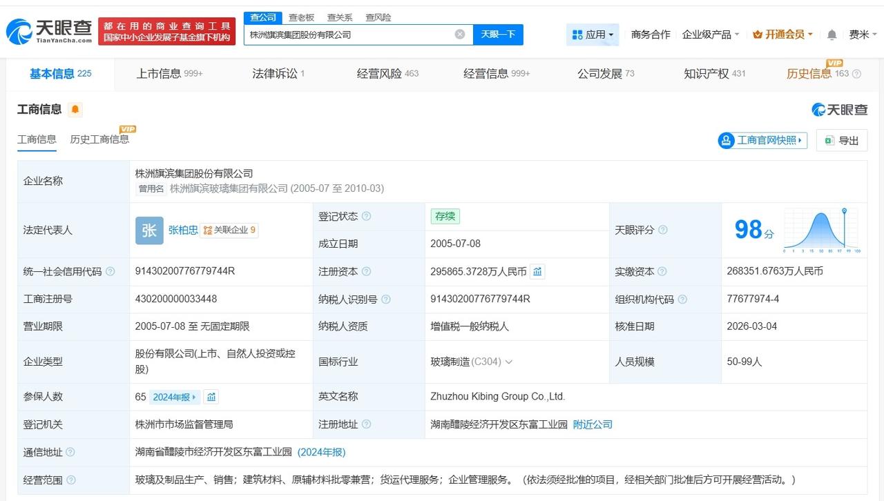 旗滨集团增资至29.6亿增幅约10% 天眼查App显示,近日,旗滨集团发生工商变更,注册资本由约26.8亿人民币增至约29.6亿人民币,增幅约10%。 株洲旗滨集团股份有限公司成立于2005年7月,法定代表人为张柏忠,经营范围包括玻璃及制品生产、销售,建筑材料、原辅材料批零兼营等。股东信息显示,该公司由俞其兵、福建旗滨集团有限公司、香港中央结算有限公司等共同持股。 天眼查信息: